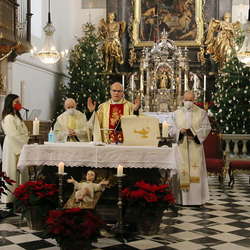 Auch am Samstag, den 25.12.2021, feierten wir um 09:30 Uhr gemeinsam das Hochamt zum Hochfest der Geburt des Herrn. Hauptzelebrant war Pfarrer P. Petru Farcaș OFMConv., Konzelebranten P. Valentin Solomon OFMConv. und P. Clemens Breineder OFMConv. Musikalisch gestaltet wurde das Hochamt von einem kleinen Gesangsensemble sowie Bläsern und Orgel unter der Leitung von Mag. Adelheid Bruckmoser.
