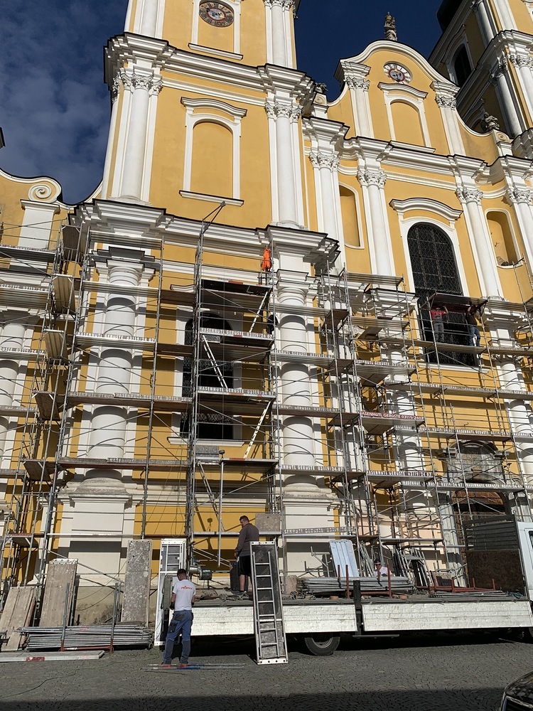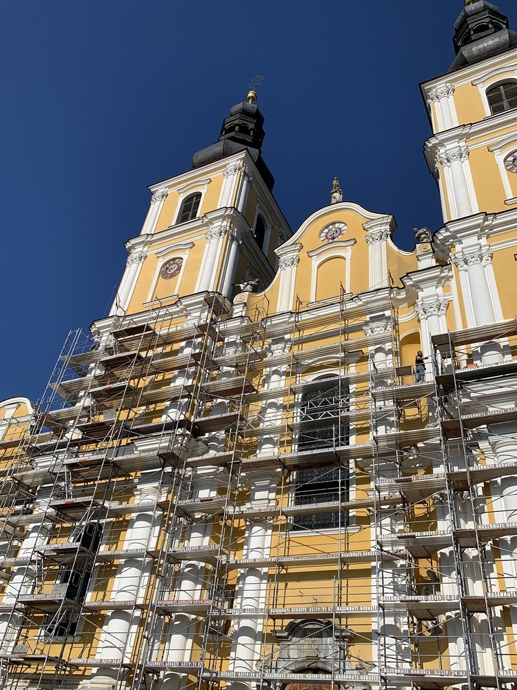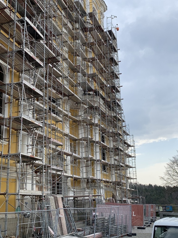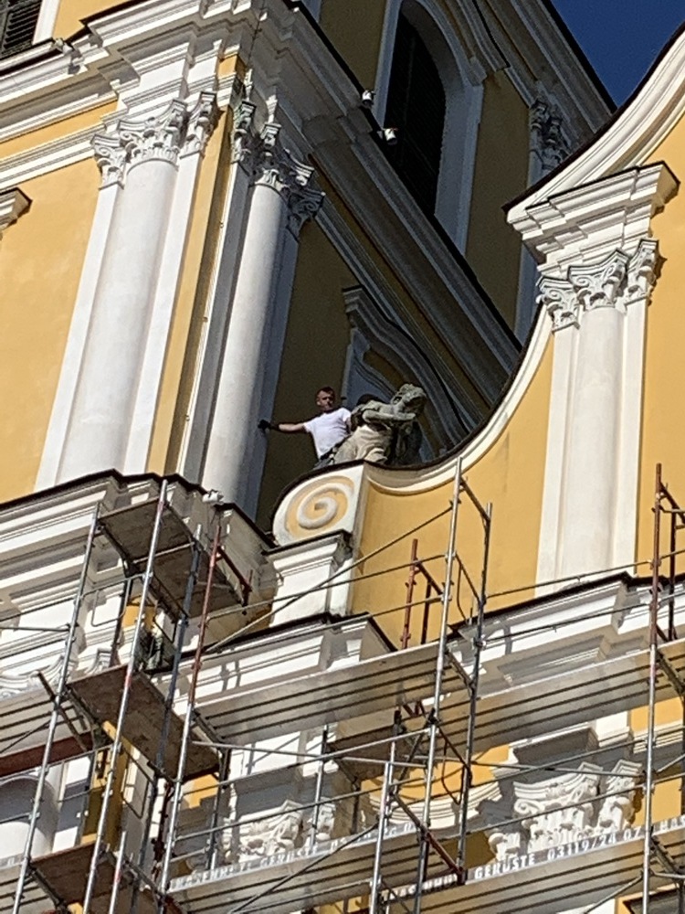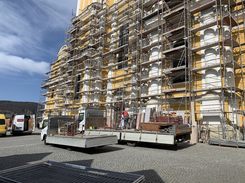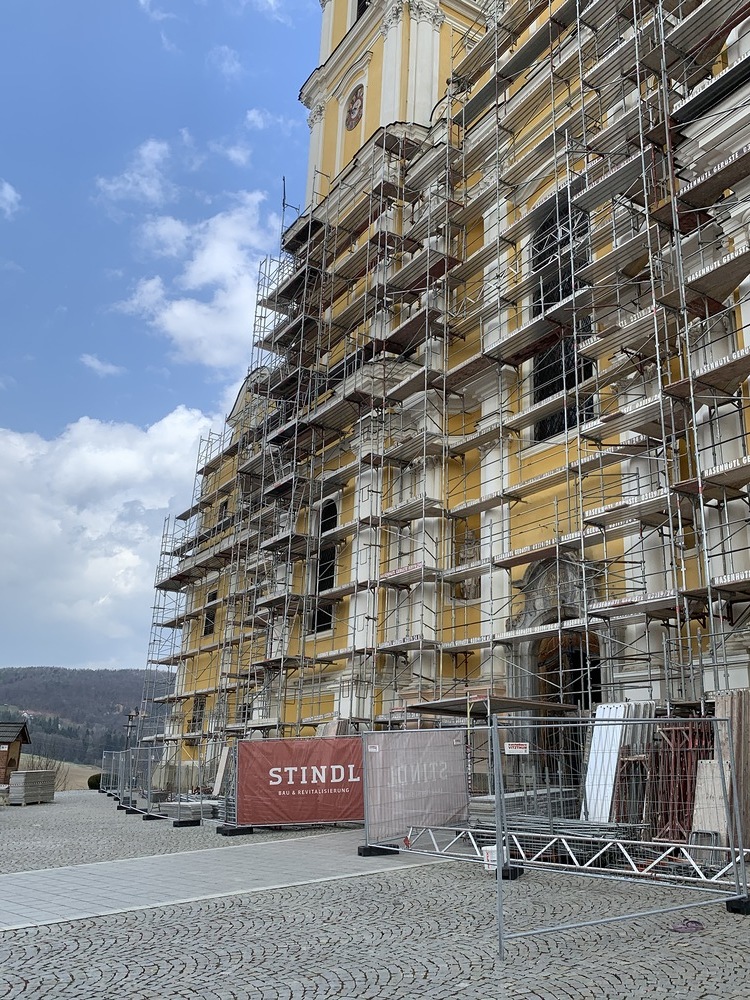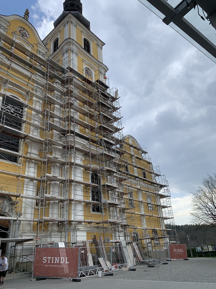 In der Karwoche von 29. März bis 2. April wurden die beiden Türme immer höher eingerüstet. Die Arbeiter befanden sich in schwindelnden Höhen.