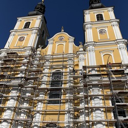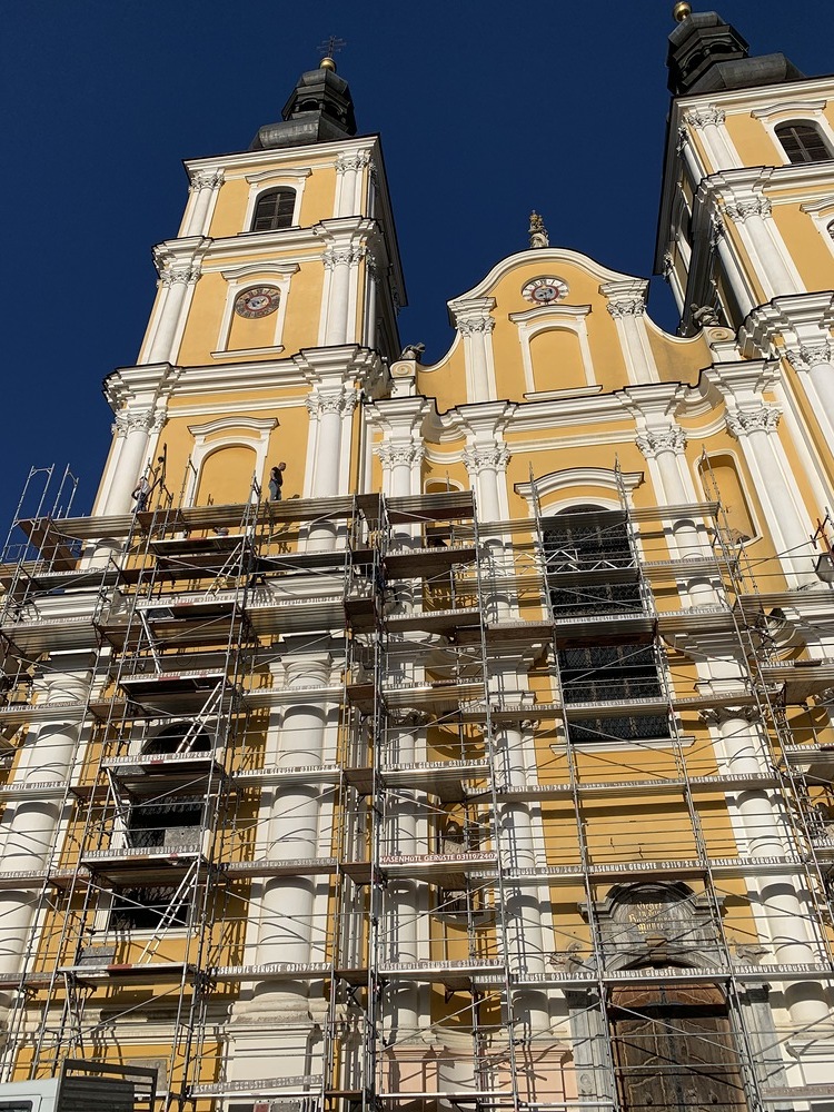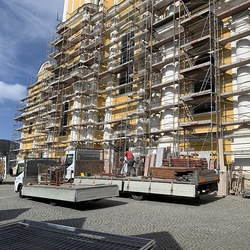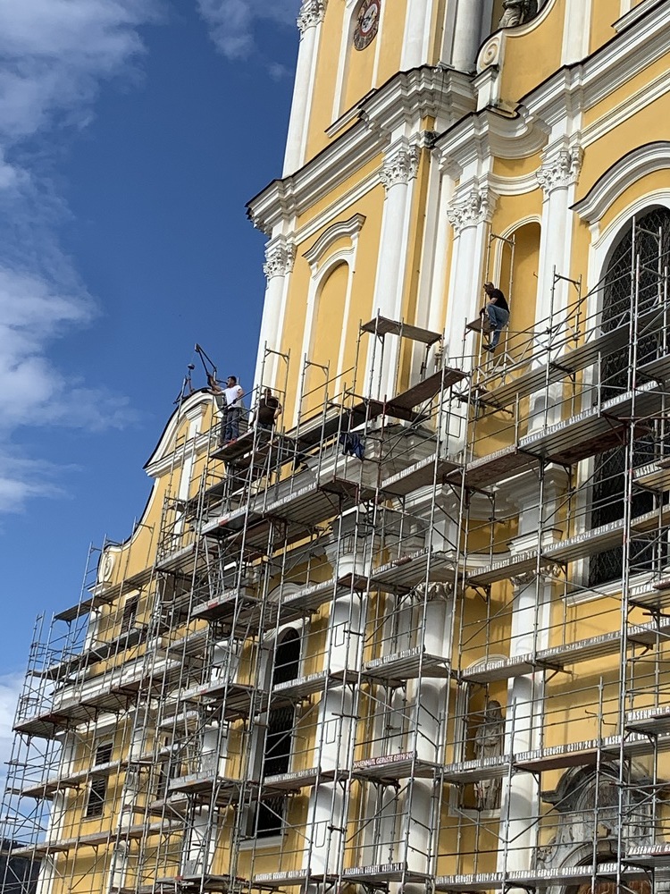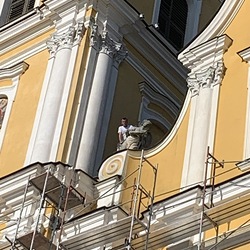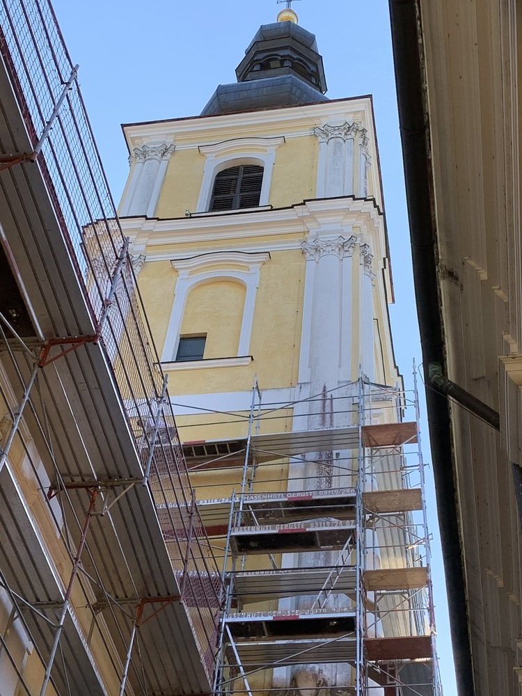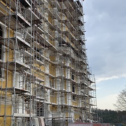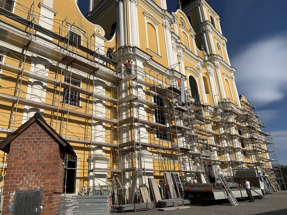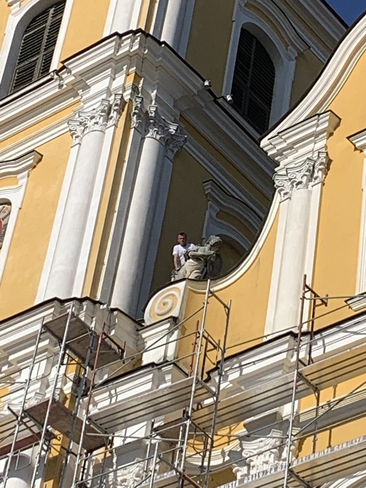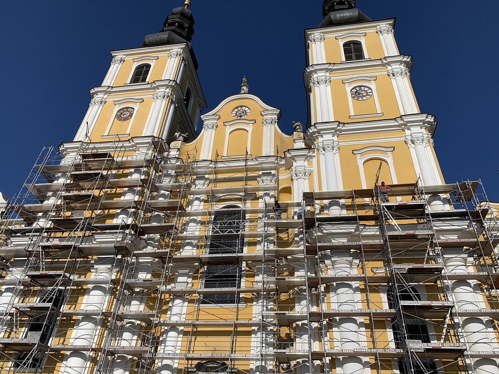 In der Karwoche von 29. März bis 2. April wurden die beiden Türme immer höher eingerüstet. Die Arbeiter befanden sich in schwindelnden Höhen.