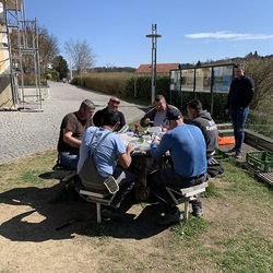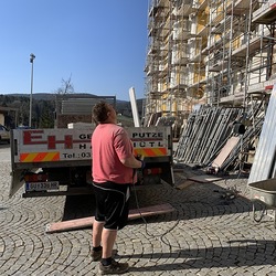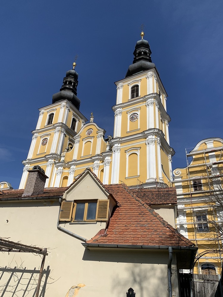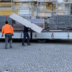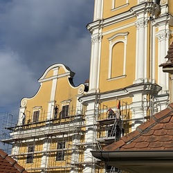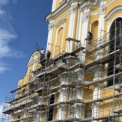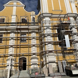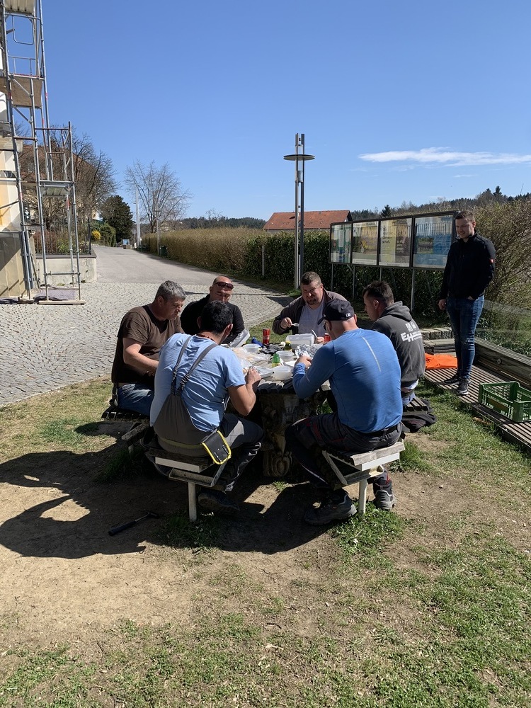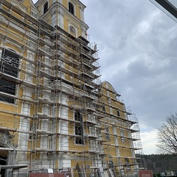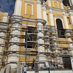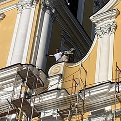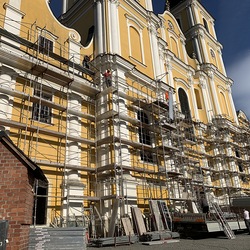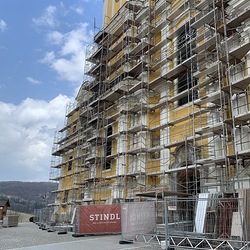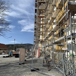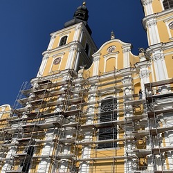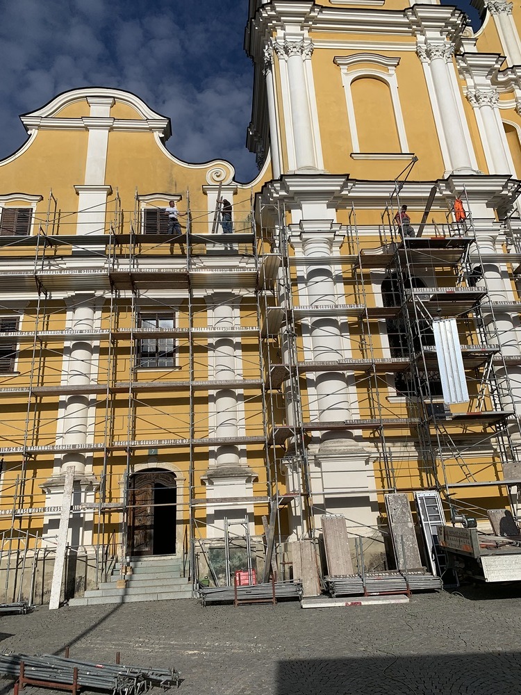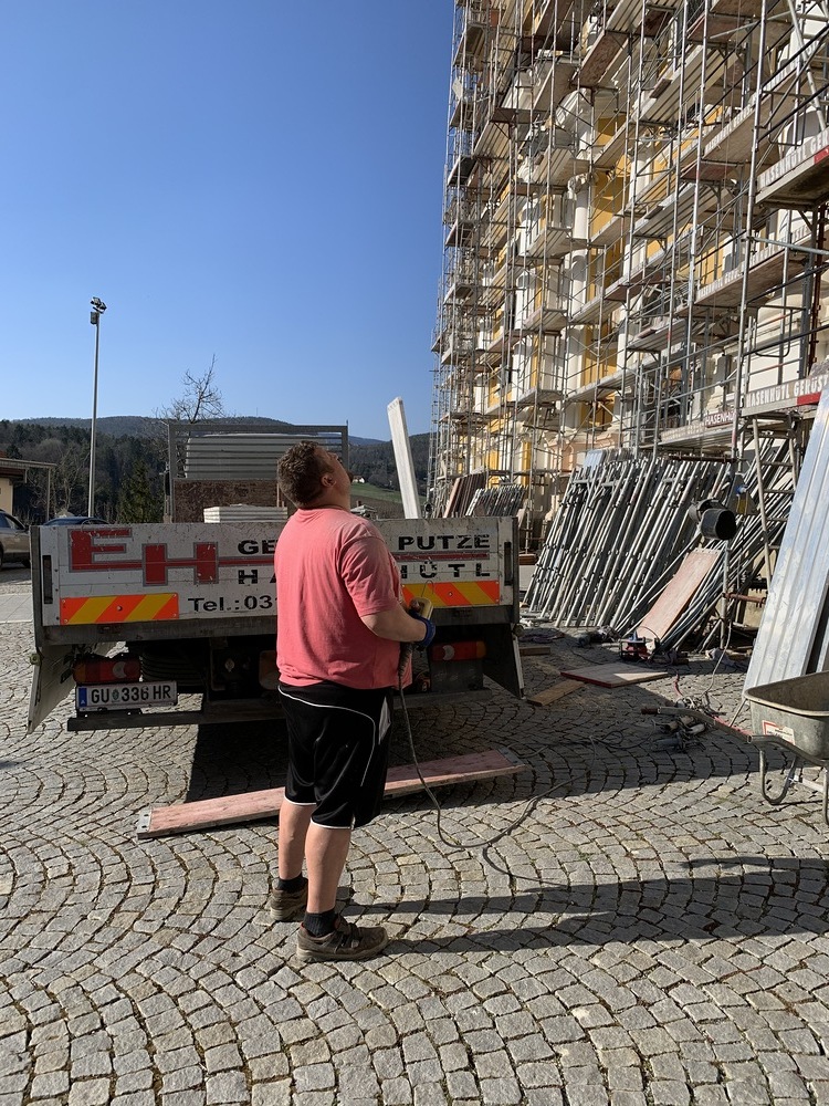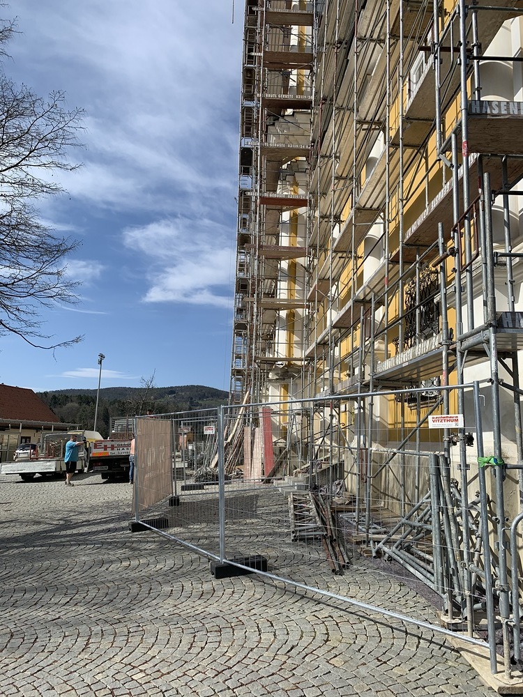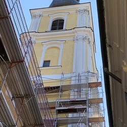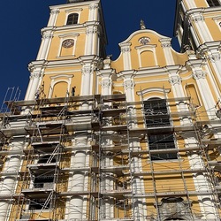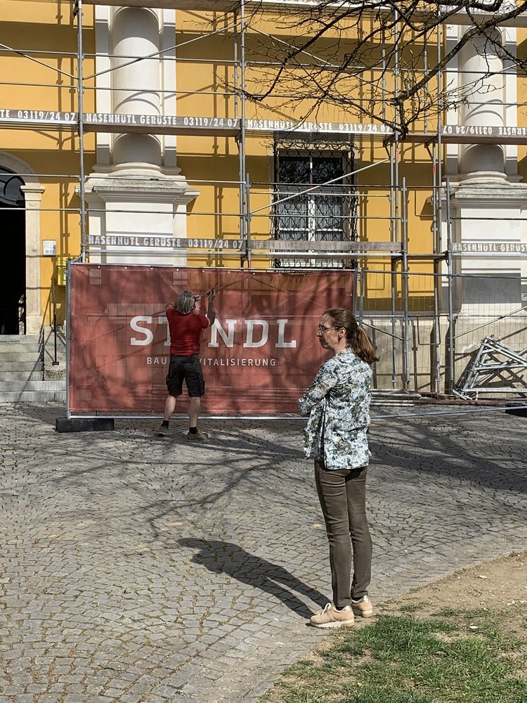 In der Karwoche von 29. März bis 2. April wurden die beiden Türme immer höher eingerüstet. Die Arbeiter befanden sich in schwindelnden Höhen.