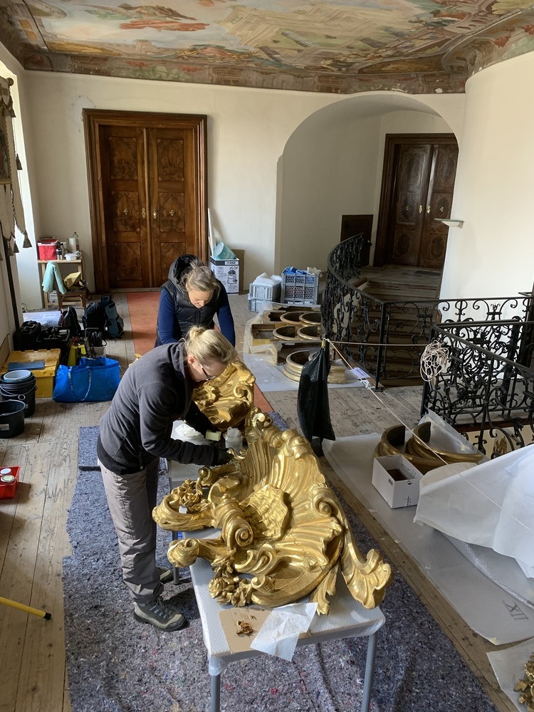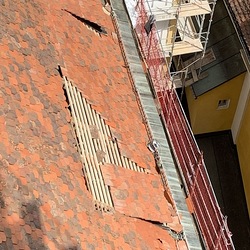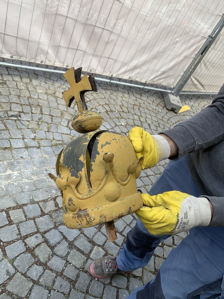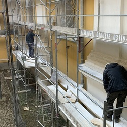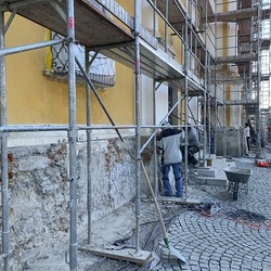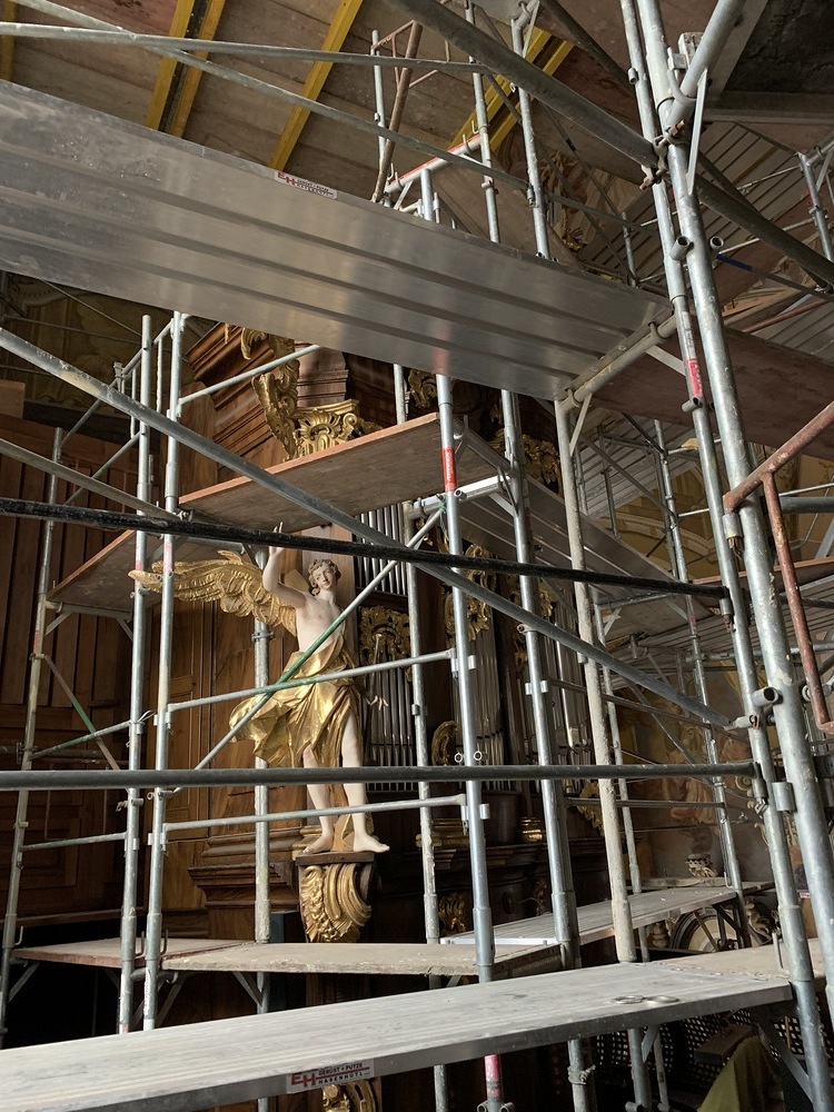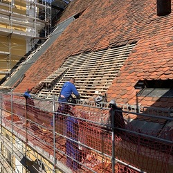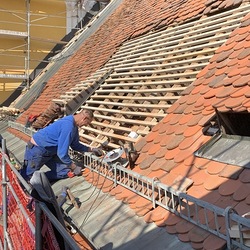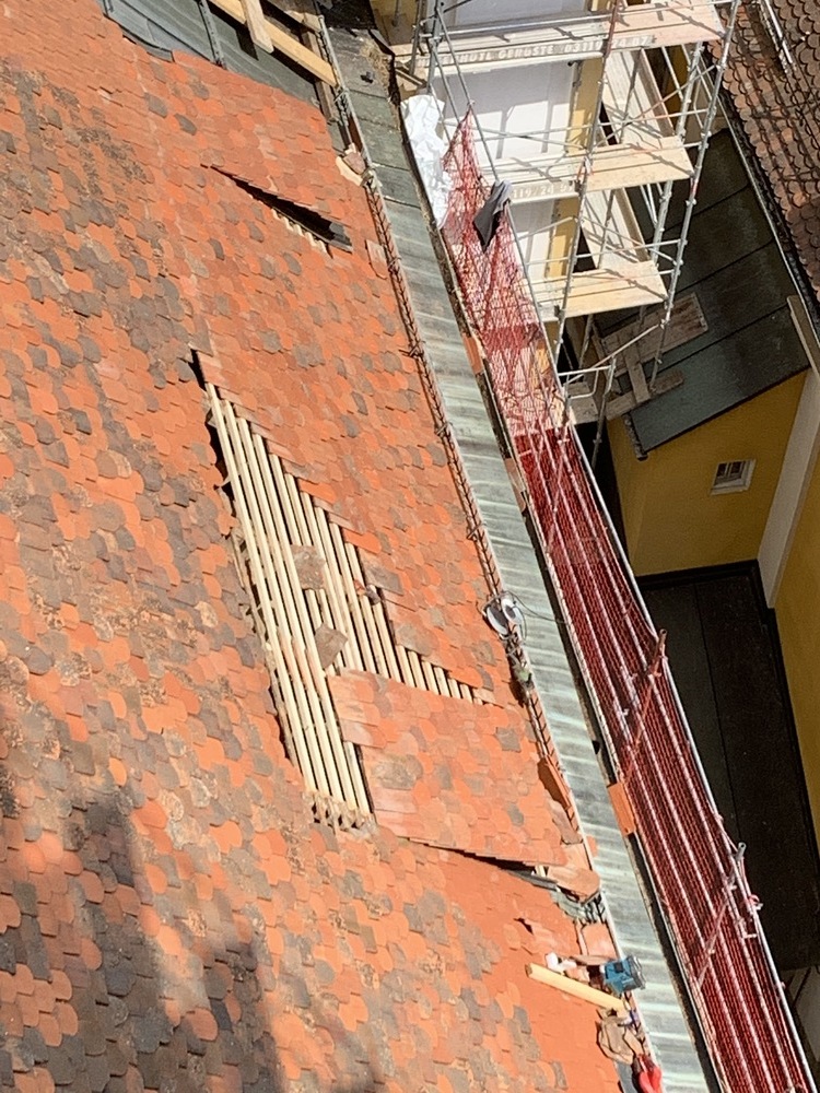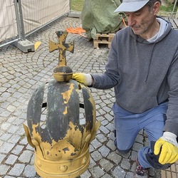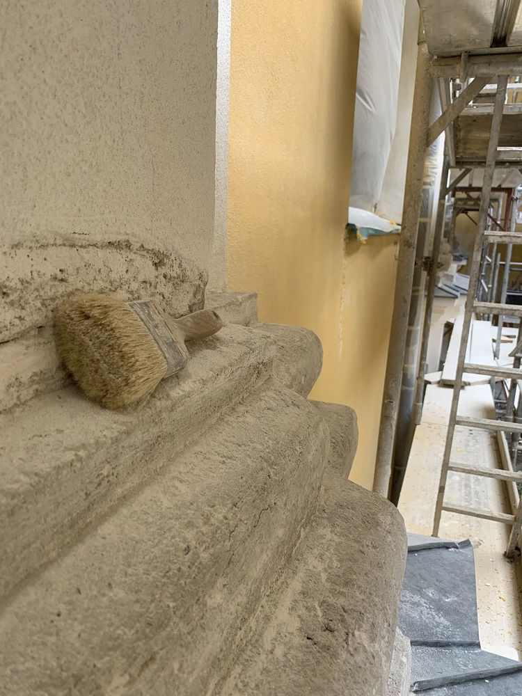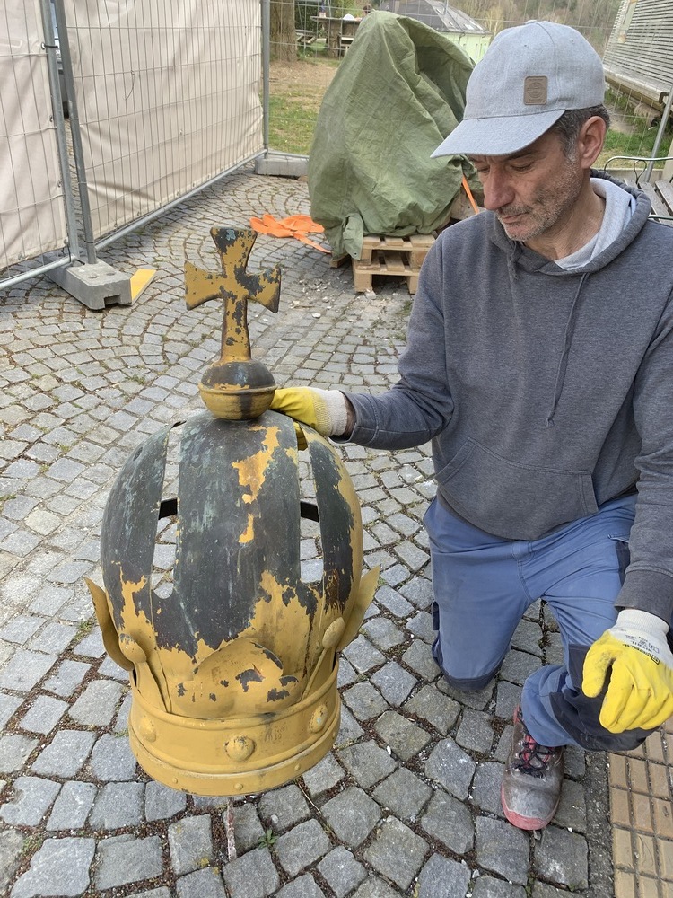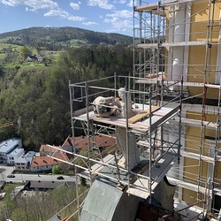 In dieser Woche waren an die 20 Personen in und um die Basilika mit Restaurierungsarbeiten beschäftigt. Gerüstaufsteller, Dachdecker, Steinmetz, Anstreicher, Restauratorinnen und Restauratoren.