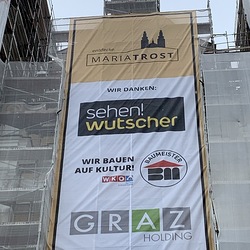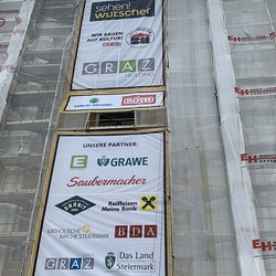 In dieser Woche wurden die Werbeplakate an der Fassade angebracht.