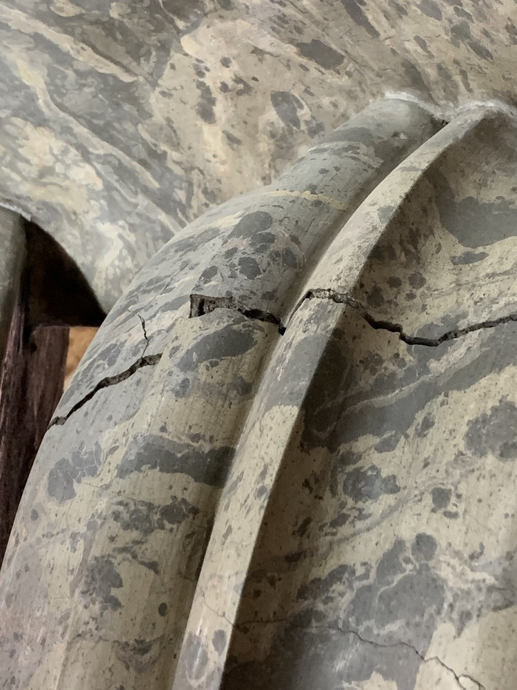 Bei der Begehung des Hochaltars wurde am Baldachin ein großer Riss entdeckt.