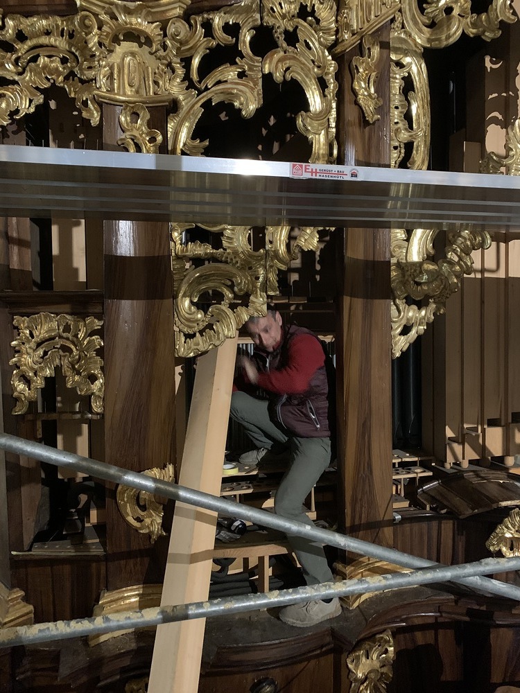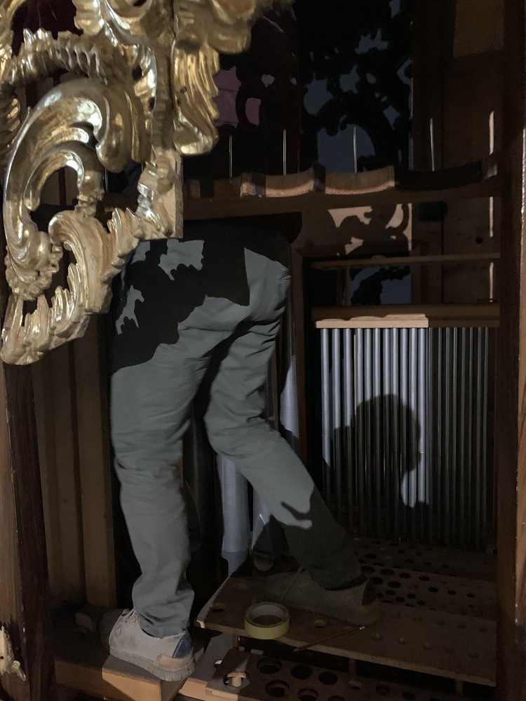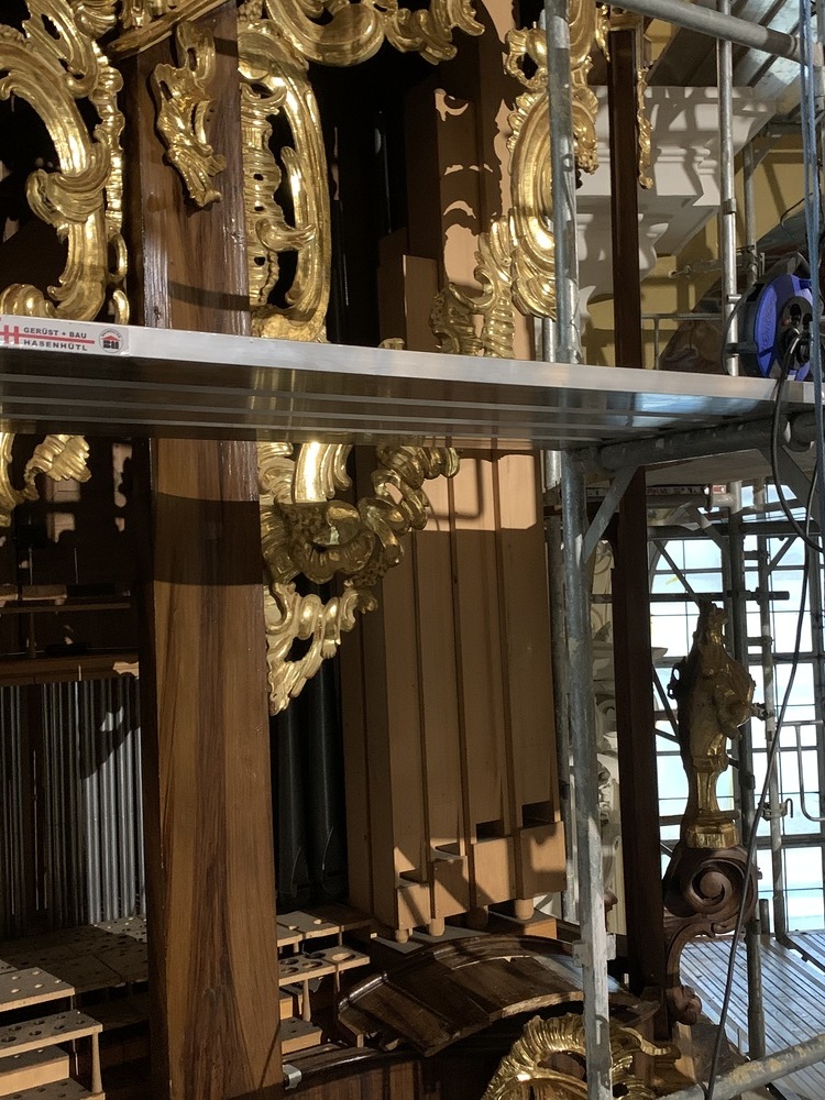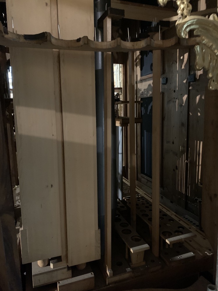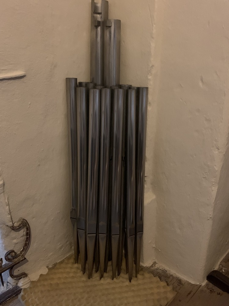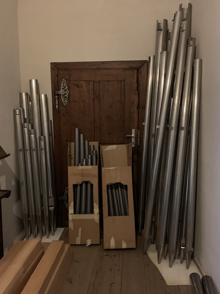 In dieser Woche wurden auch ein Teil der Orgelpfeifen für die Reinigung und Entstaubung ausgebaut.