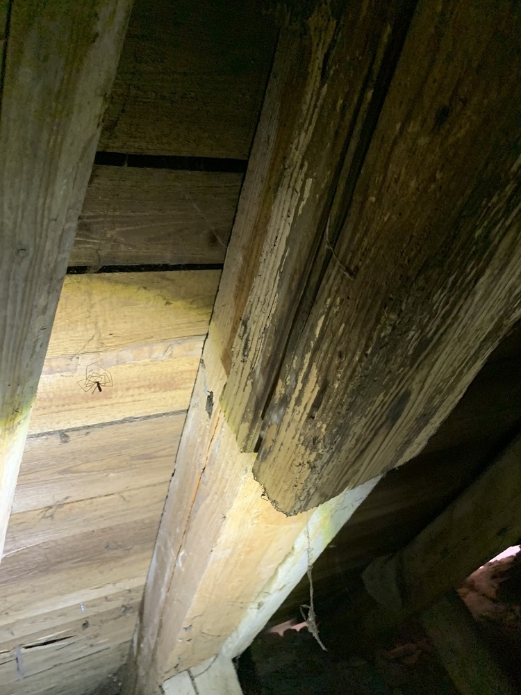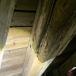 Bei der Begehung des Dachstuhls über der Basilika wurden einige vermorschte Stellen entdeckt, die durch Regeneintritt entstanden sind.