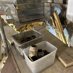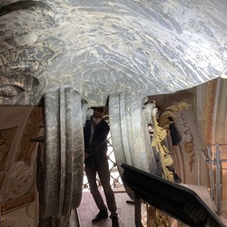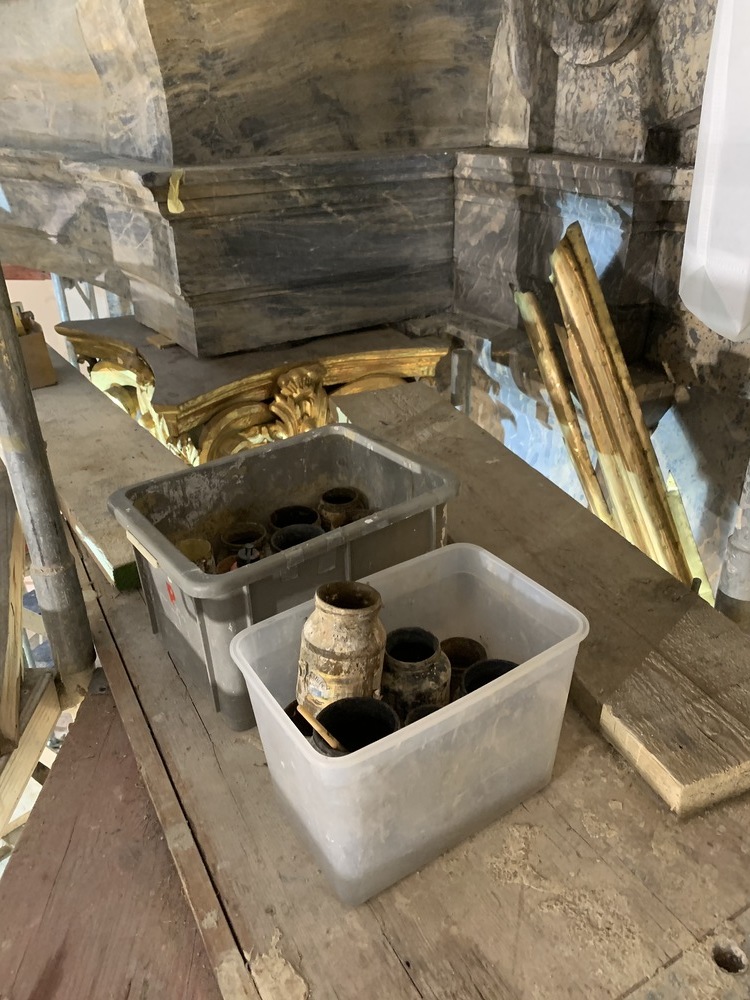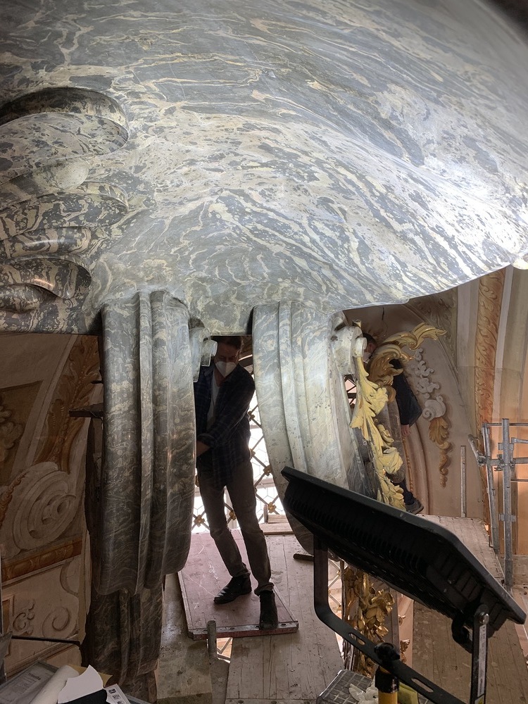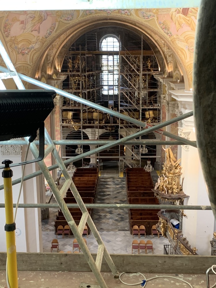 Baubesprechung und Besichtigung der Renovierungen am Hochaltar und der Orgelempore.