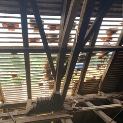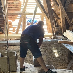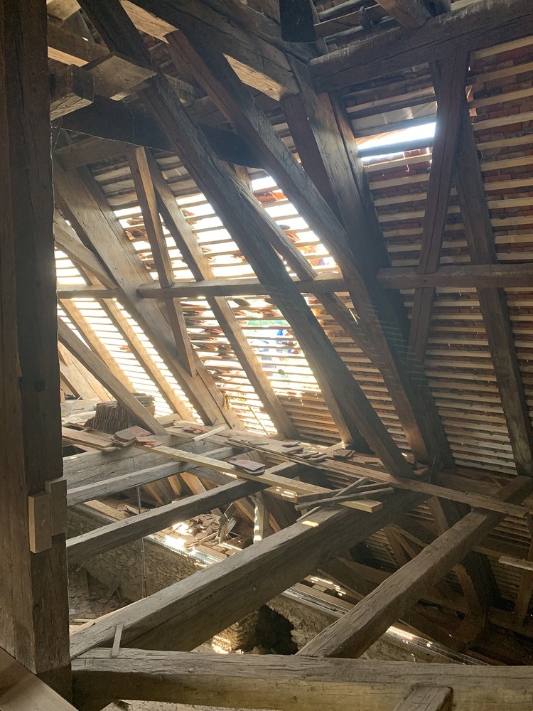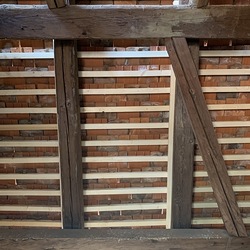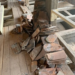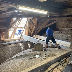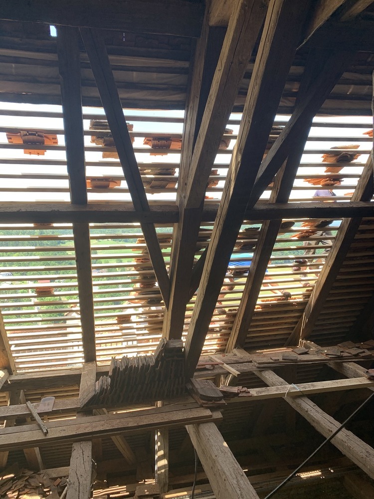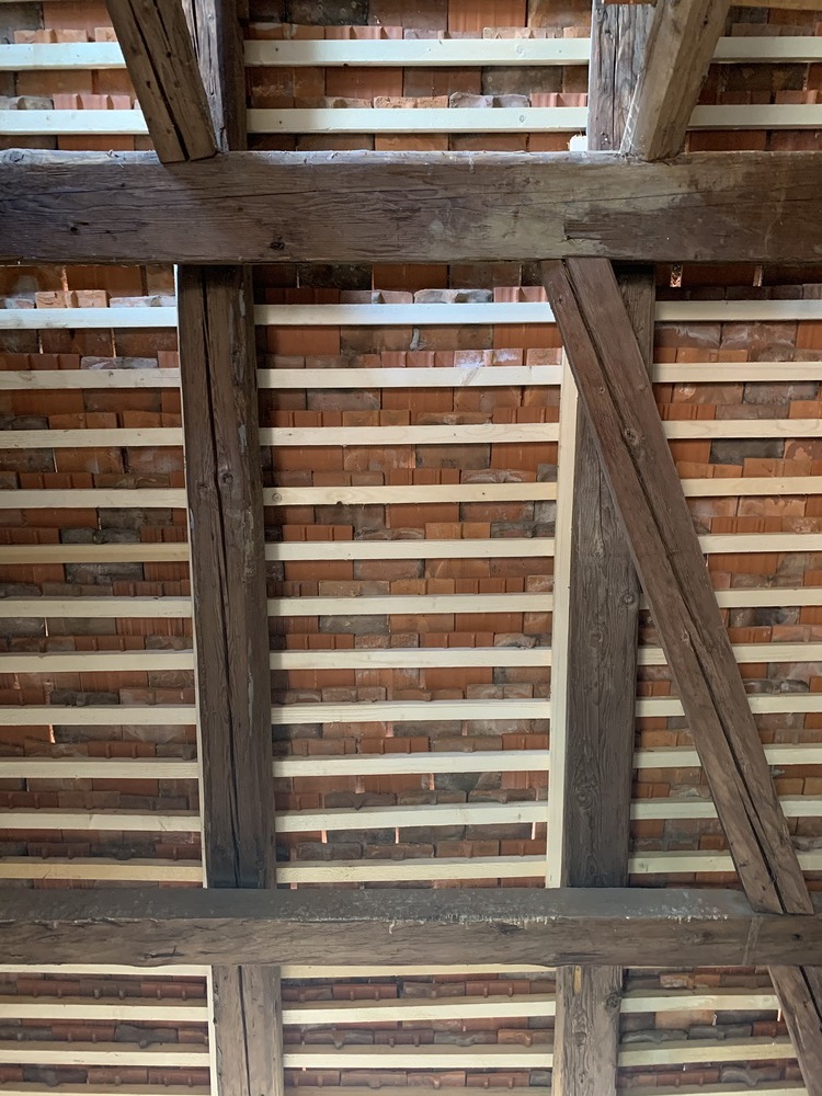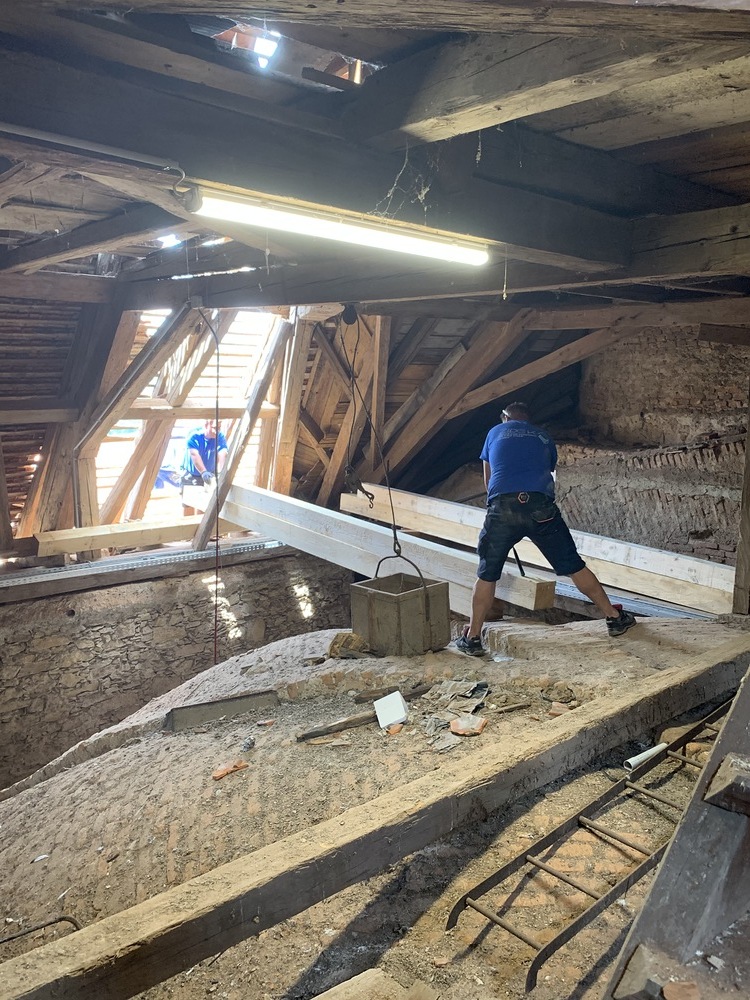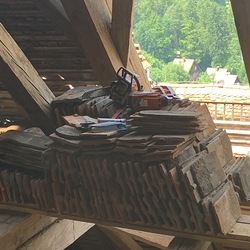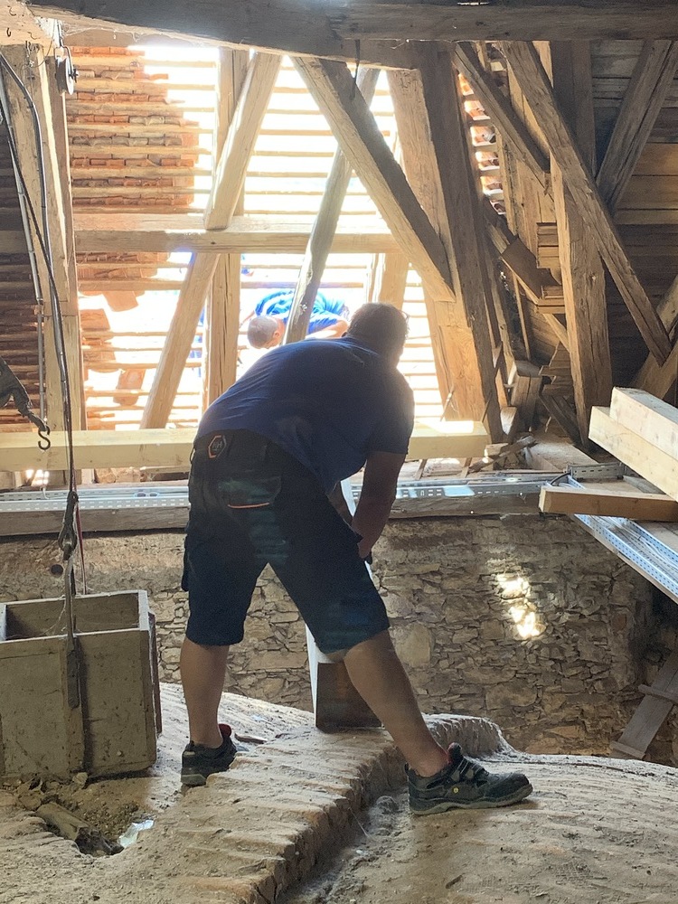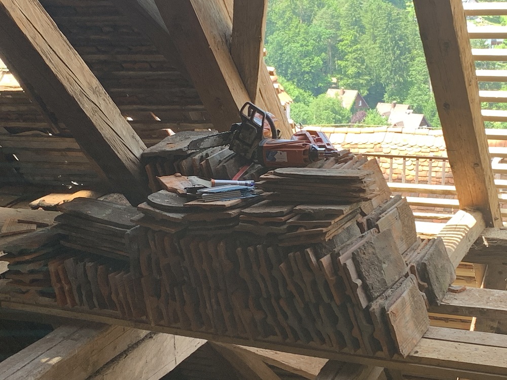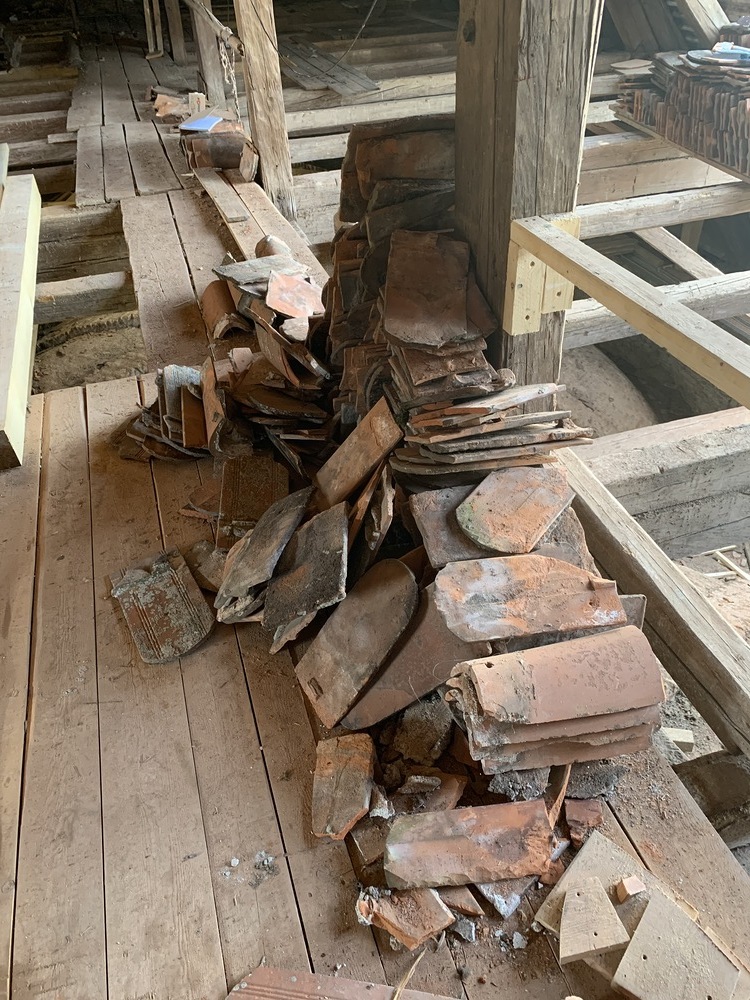 Die gesamten Dachlattungen am Basilikadach wurden erneuert, die Dachziegel überklaubt und beschädigte Ziegel erneuert. Einige Dachsparren mußten erneuert werden, weil sie durch eindringendes Wasser vermorschten.