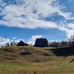 Nach einem kleinen Spaziergang ging es wieder bergab, begleitet von beeindruckenden Blicken auf die umliegende Bergwelt und die herbstliche Natur. Der Grimming gab sich mal bedeckt, mal nur mit Hut … der Dachstein ließ sich leider nicht blicken.