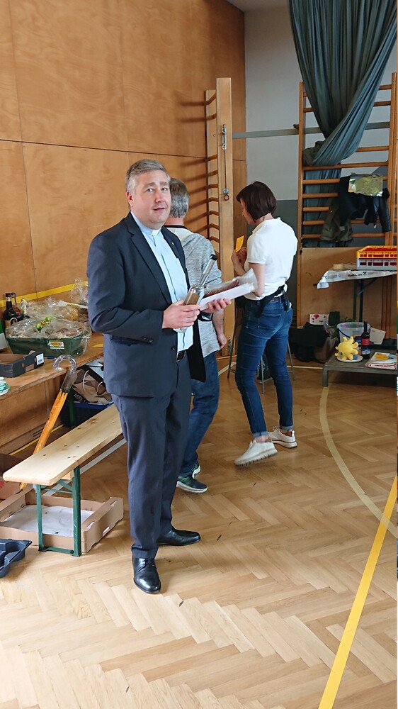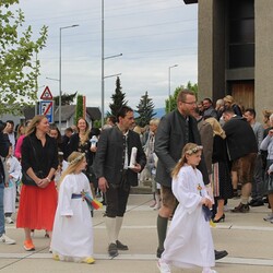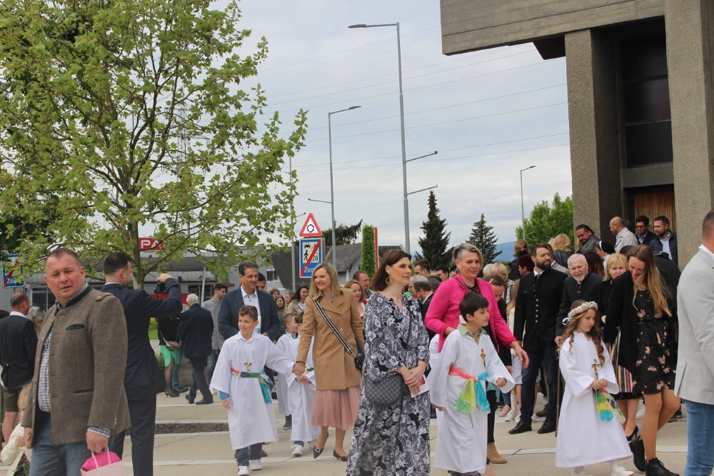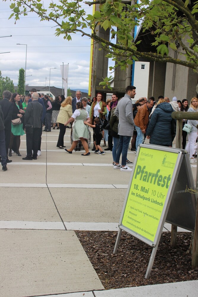 Nach der wunderschön gestalteten Erstkommunion zogen die Erstkommunionkinder in die Halle um beim Start des Pfarrfests dabei zu sein. Nachdem wir letztes Jahr richtiges Wetterglück hatten, mussten wir diesmal in die Veranstaltungshalle ausweichen. Dem Wetter zum Trotz war die Stimmung sehr gut. Das Kinderprogramm war gut besucht, viele Preise wurden verlost und natürlich gab es wieder genug zu essen und zu trinken. Obwohl diesmal besonders viele Torten gebacken wurden, waren am Schluss alle weg.