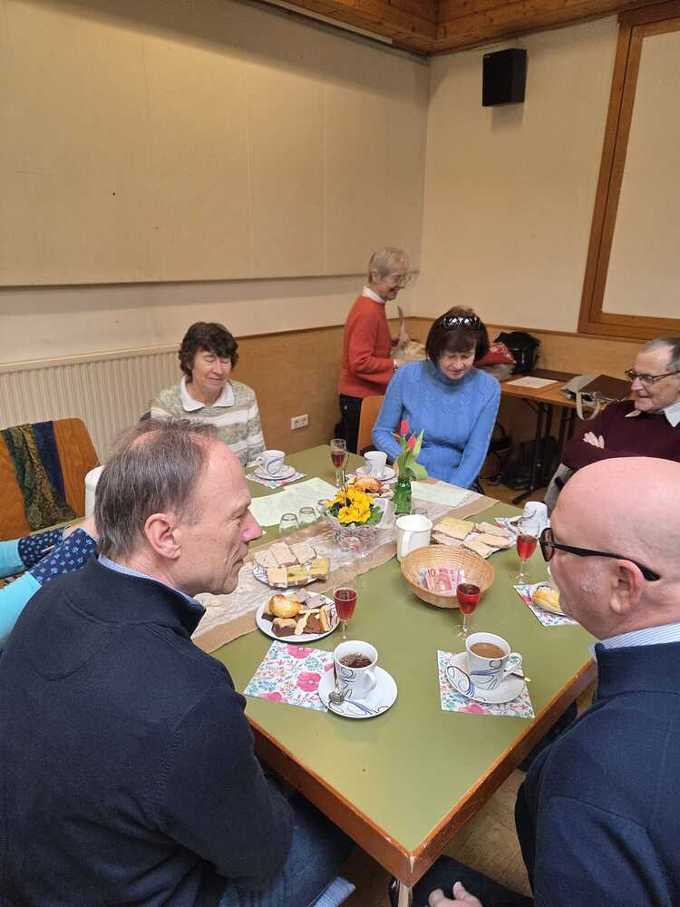 Viele folgten der Einladung und unterhielten sich gut bei Kaffee,  Kuchen und "Uhudlerprosecco" und gemeinsamen Liedern.