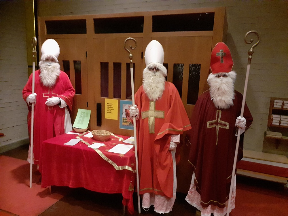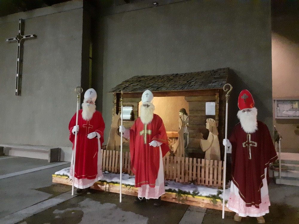 Erwin Schörgi, Bernhard Breitegger und Gernot Guttmann haben mit Abstand einige Familien mit ihrem Besuch als Nikolaus erfreut. Es wurde im Freien gefeiert, mit Feuerschalen zum Wärmen, in Hauseingängen und festlich beleuchteten Gärten.