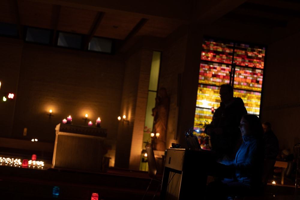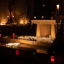 „Beim Ankommen staunend die Lichter vor und in der Kirche wahrnehmen. Die vorgetragenen Impulse achtsam hören und aufnehmen, sich der Stille in der Kirche bewusst werden, obwohl viele Menschen umhergehen. Geborgenheit spüren, den Menschen gegenüber die mir diese kostbaren Augenblicke zuteil haben werden lassen.“