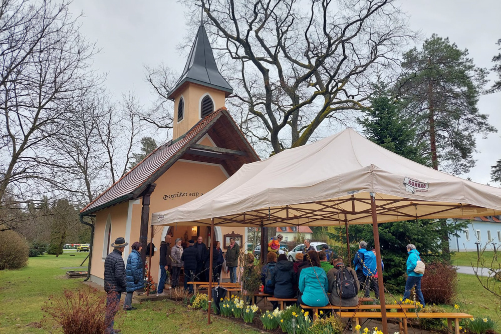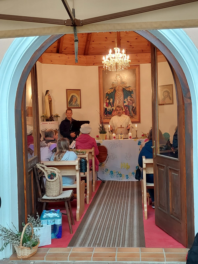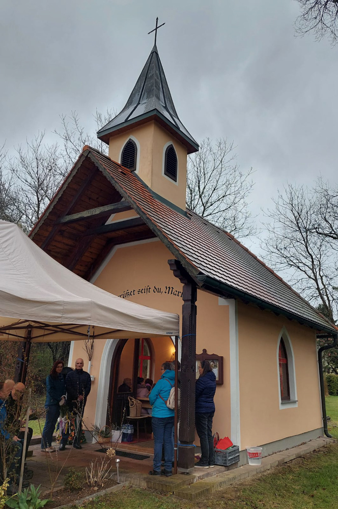 Am Palmsamstag, dem 9. April 2022, fand die erste Sternwallfahrt des Seelsorgeraumes Kaiserwald statt. Ziel war die Kaiserwaldkapelle in der Pfarre Premstätten. Trotz ziemlichen Regens haben sich mehr als 60 Wallfahrerinnen und Wallfahrer eingefunden und bei der Wort-Gottes-Feier ihre Palmbuschen segnen lassen. Bei einer Agape konnten sich die Teilnehmerinnen und Teilnehmer austauschen und haben dann noch gesegnetes Salz für die Osterspeisen mit nach Hause genommen.