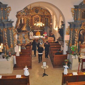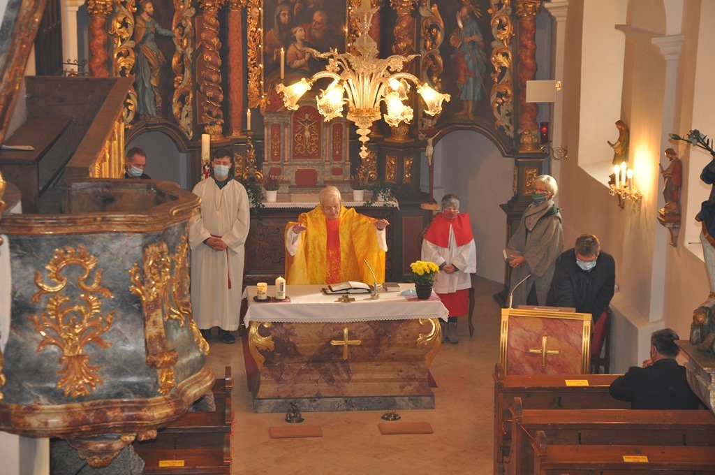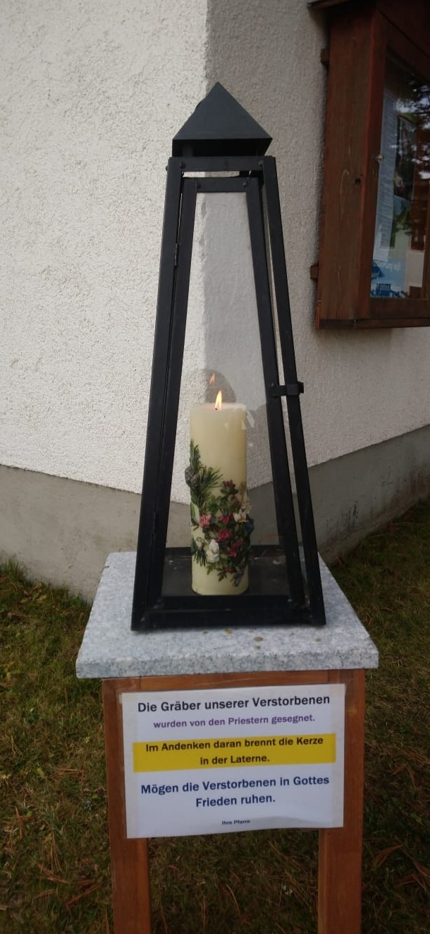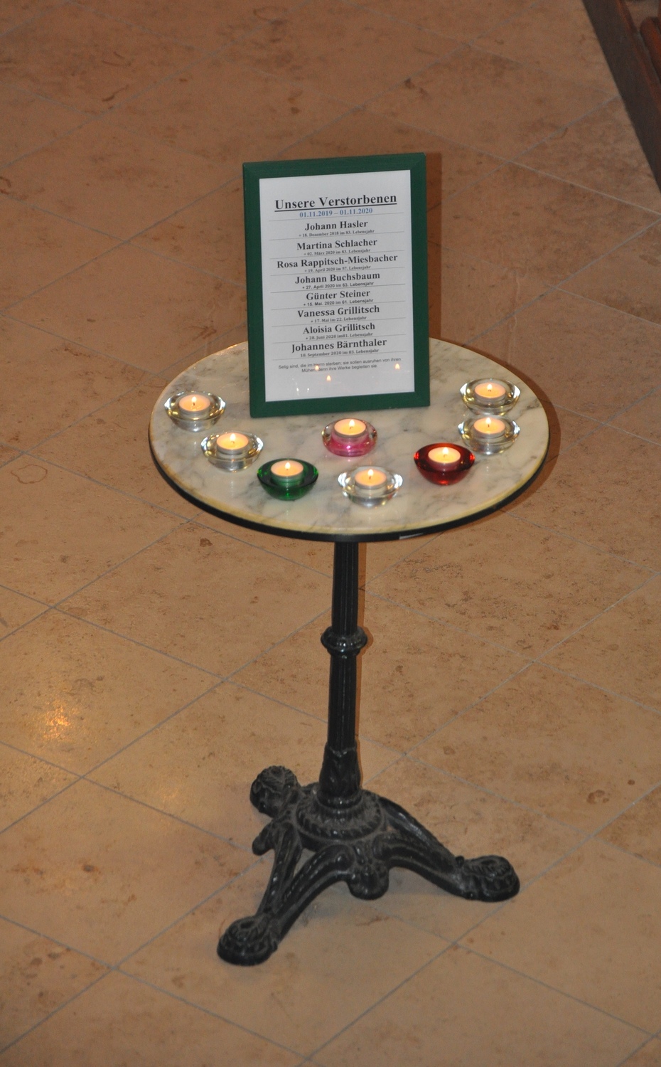 Im Anschluss fand die heilige Messe in der Pfarrkirche statt. In der Kirche war ein Tisch mit Kerzen aufgestellt, der an die Verstorbenen dieses Jahres erinnerte.