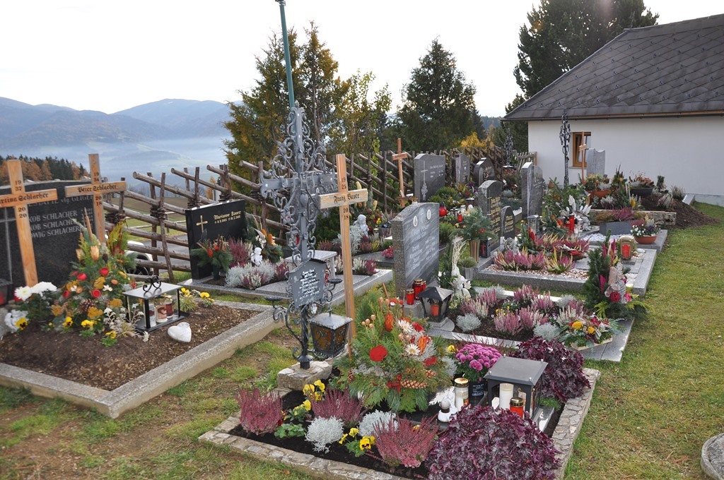 Die Gräber wurden vor der Messe von Pfarrer Ferdinand Sattler und den Ministranten mit Weihwasser und Weihrauch gesegnet.