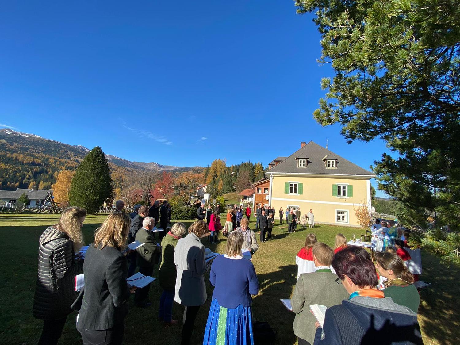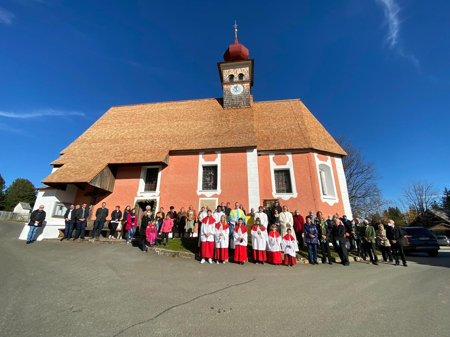 Bei strahlendem Herbstwetter konnten wir die Heilige Messe auf der Pfarrhofwiese mit genügend Abstand feiern. Mit uns feierten unser Herr Pfarrer Mag. Heimo Schäfmann, Dechant Mag. Martin Edlinger aus Bad St. Leonhard, Pfarrer Nirmal aus Reichenfels, Pater Bruno Heberle aus dem Pölstal, Pfarrer Ciprian Sascau Pfarrer von Niederwölz, die Festmesse. Der Kirchenchor umrahmte die Messe gesanglich.