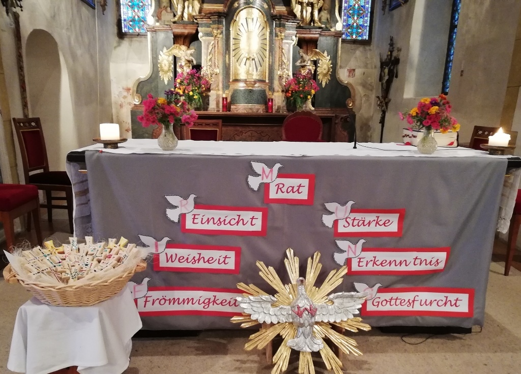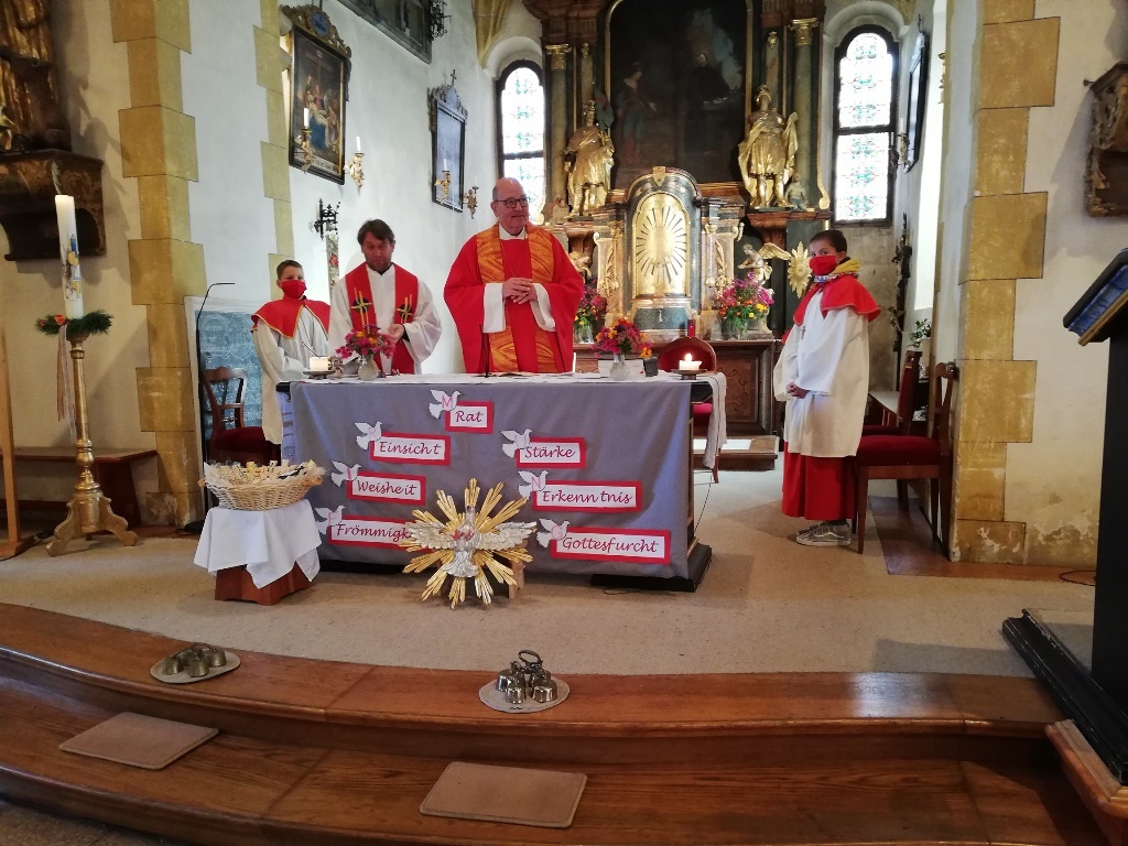 Kanonikus Mag. Christian Leibnitz begrüßte die Jugendlichen zu ihrem großen Fest und gab ihnen einen Platz von Jesus mit auf dem Weg, "Der Abstand, den wir gerade in dieser Zeit halten müssen , sehen wir doch Jesus auf diesem Platz sitzen, er kann so ganz nah an jedem Menschen sein. Auch in der Predigt sprach Mag. Leibnitz von der Zusage der "Sieben Gaben des Heiligen Geistes", aber auch von den Stärken, die jeder von uns hat und es jeden einzelnen so einzigartig macht". Umrahmt wurde das Fest musikalisch von "Styria drei".