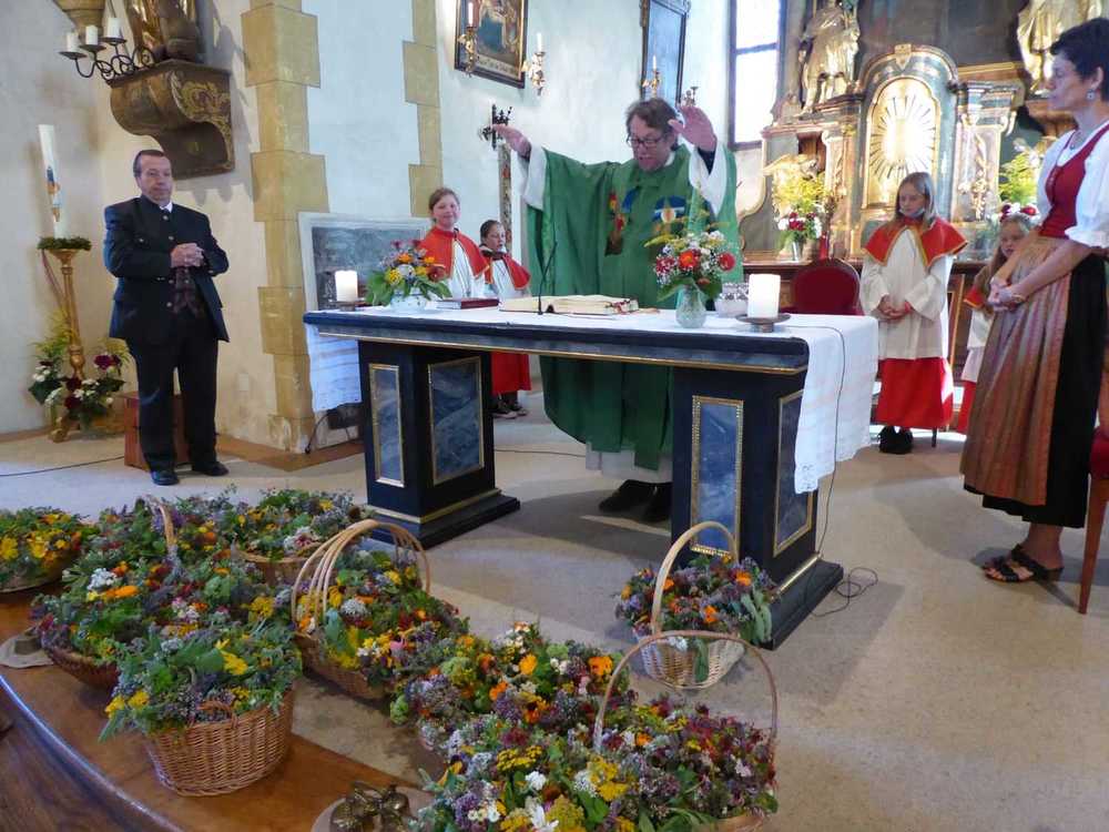 Für die diesjährige Kräuterweihe in der Pfarrkirche Obdach wurden von der Trachtengruppe Steirisches Zirbenland wieder Kräutersträußchen gebunden, die am Ende des Gottesdienstes an der Kirchtüre verteilt wurden.