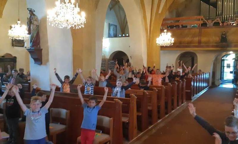 Im Anschluss an die Feier verteilte Pfarrer Mag. Schäfmann an alle Schulkinder kleine Schokobomben verbunden mit "Schönen Ferien".