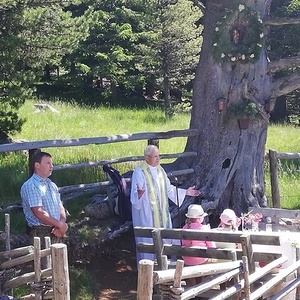 Zu Beginn wurde die neue Marien Statue in der Zirbe, die Fr. Hasler Grete spendete, gesegnet.
