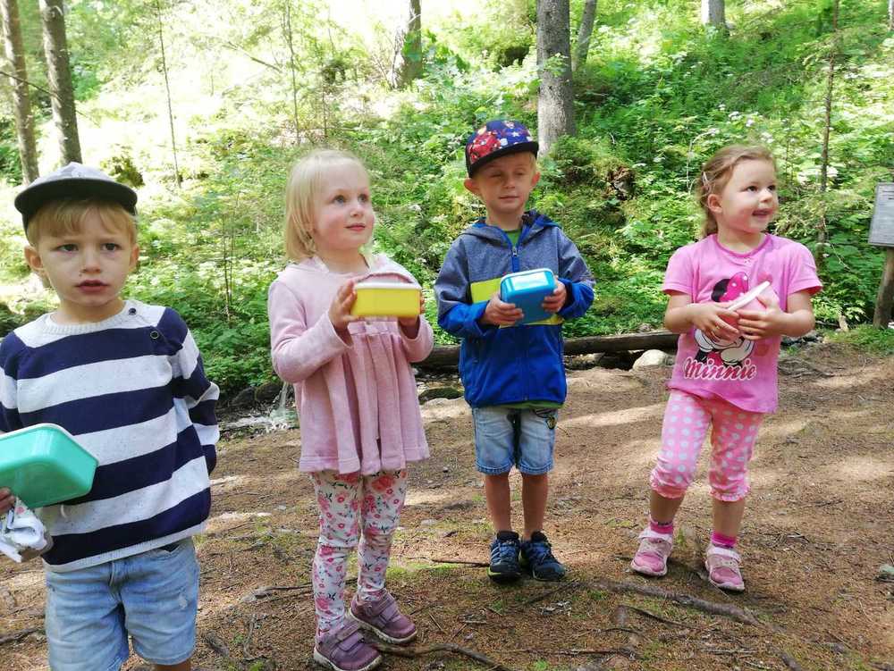 Viel gab es im Wald, Bach und Wasser zum Entdecken. Nach einer gemeinsamen Jause, natürlich im passendem Abstand, wurden die "Großen", die im Herbst in den Kindergarten kommen von der Gruppenleiterin Katrin Pojer mit einem Geschenk und guten Wünschen verabschiedet. Beim nach Hause Weg gab es noch ein Segensgebet ebenso verbunden mit Wünschen für den Sommer. Auf ein freudiges Wiedersehen im kommenden Herbst freuen sich Katrin und Anni .Viel gab es im Wald, Bach und Wasser zum Entdecken.