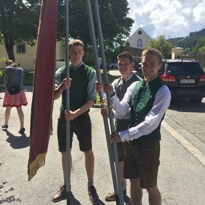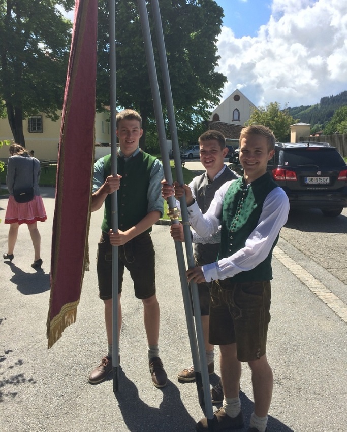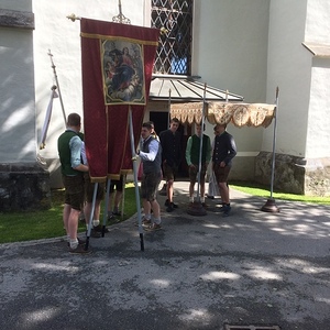Als Fahnen- und Himmelträger fungierten heuer Mitglieder der Landjugend.