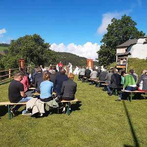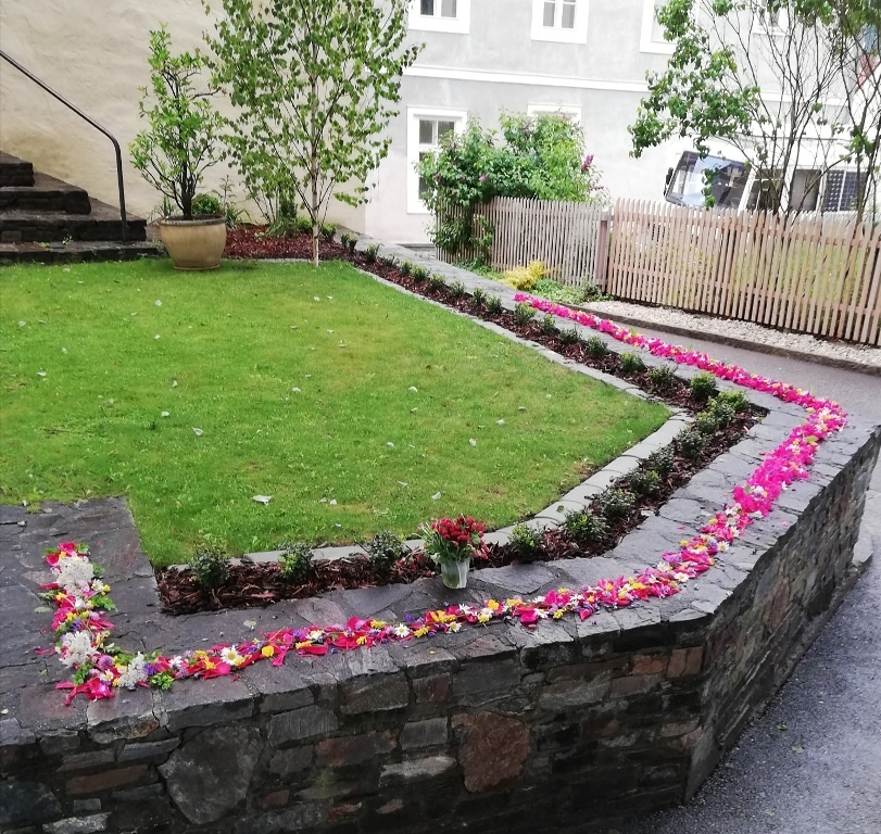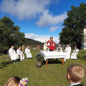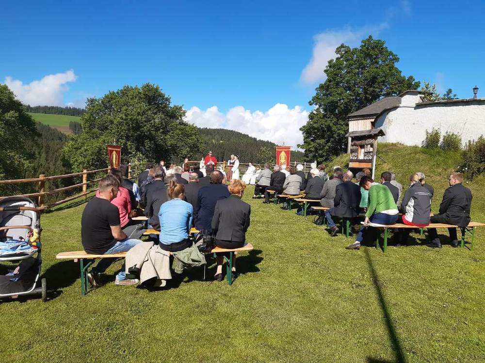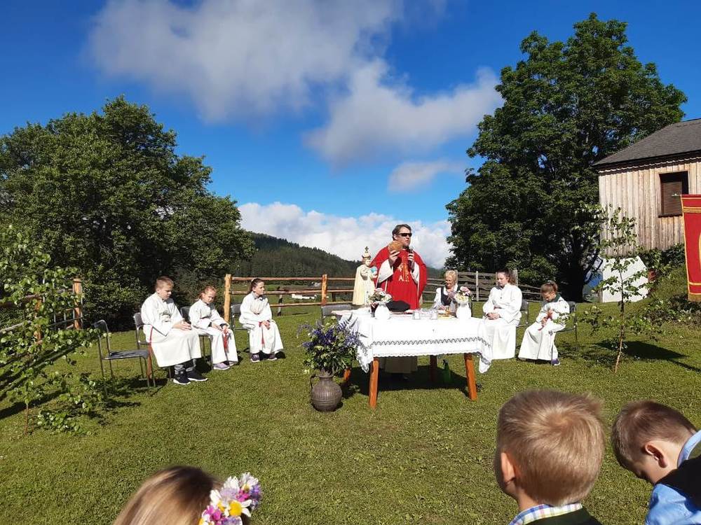 Für den Blumenschmuck zeichneten die Bäuerinnen verantwortlich und durch die musikalische Teilnahme des Musikvereines (als erste Ausrückung nach den Beschränkungen wegen der Corona-Pandemie) war es eine wundervolle Feier unter freiem Himmel..