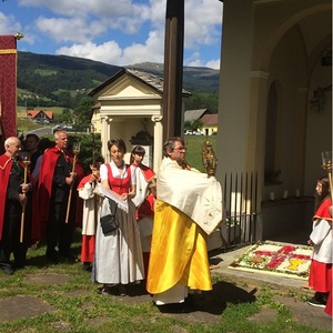 11.06.2020 Das Fronleichnams-Fest wurde heuer aufgrund der Personenbeschränkungen in allen Pfarren unseres Pfarrverbandes getrennt gefeiert.