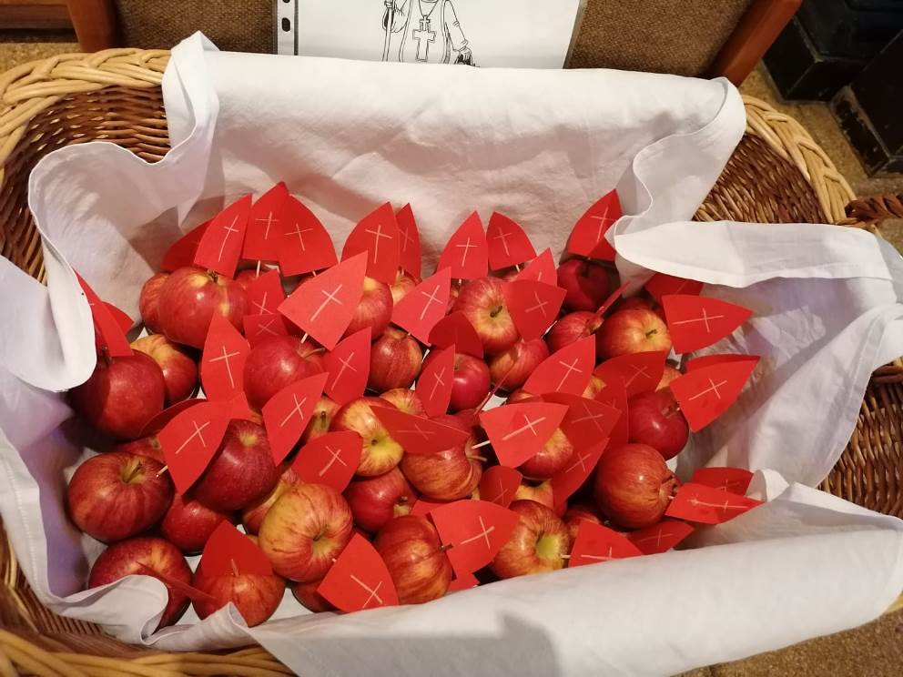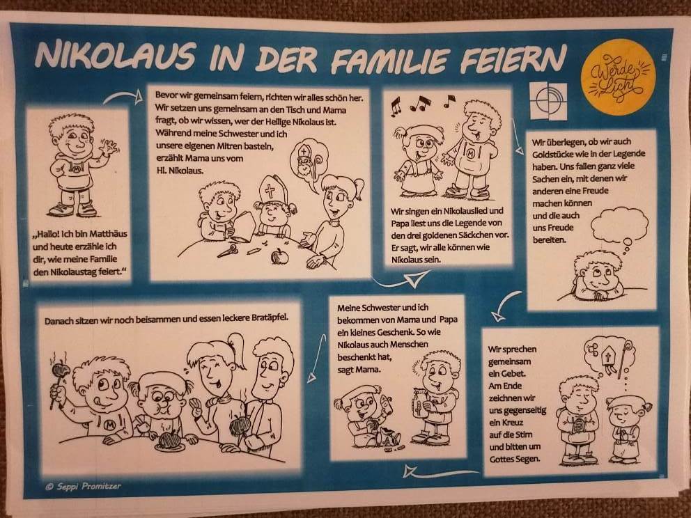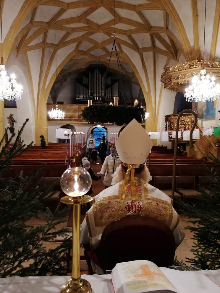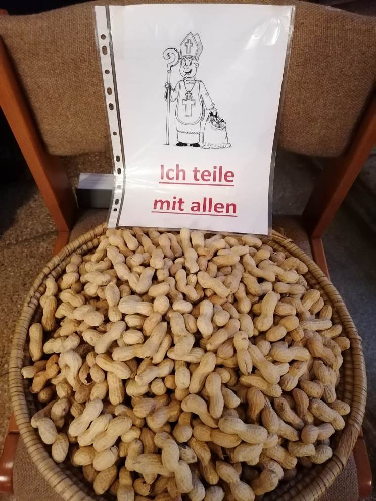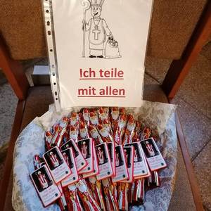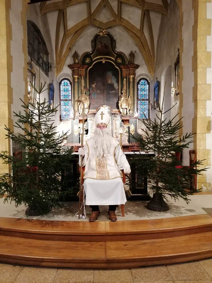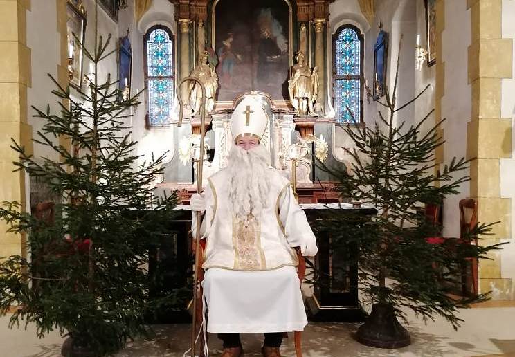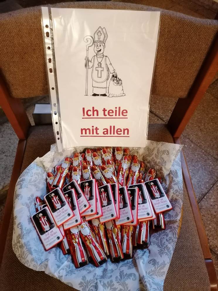 Und tatsächlich konnten einige Familien beim Spaziergang durch die Kirche (mit viel Abstand) den Nikolaus treffen, ein Foto mit ihm machen und ein paar Nüsse, Äpfel, etwas zum Zeichnen und die Legende vom Hl. Nikolaus mit nach Hause nehmen.