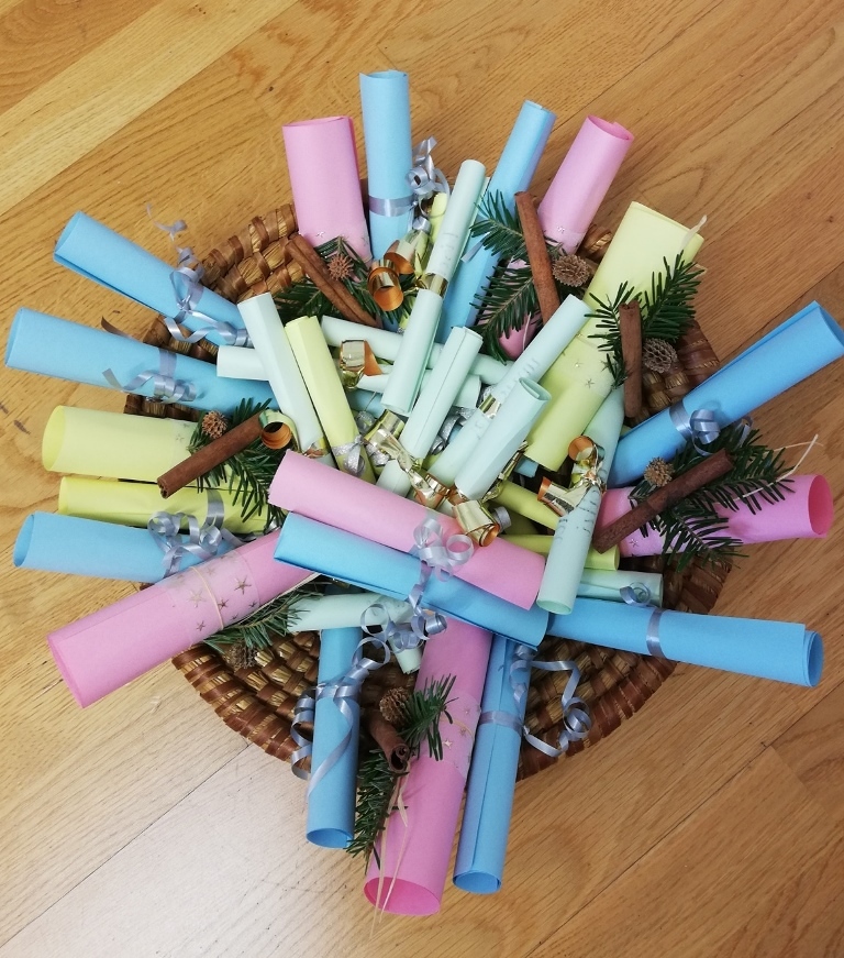 In 11 Tagen ist es soweit, das Jesuskind wird geboren - eine echte Freude, kein Spaß. Pfarrer Mag. Schäfmann ging in seiner Predigt in der Rorate besonders auf diese zwei Wörter ein, die nicht einfach nur Wörter sind.......Spaß, Freude, wir leben in einer Spaßgesellschaft - ist etwas Oberflächliches - auch gleich wieder vorbei. Freude hingegen etwas sehr Tiefsinniges, etwas Erlebbares, Nachhaltiges, an dass ich mich immer wieder erinnern kann, mich daran erfreuen kann. Die Rorate stand ganz im Zeichen der Jugend, Die Ministranten bauten gleich zu Beginn an "Warten auf den Herrn" weiter und brachten Stroh als Symbol der Wärme in die "noch kalte Krippe". Die Firmlinge, die zu dieser Feier eingeladen waren, gestalteten die Lesung, die Fürbitten mit Lichtern und einen Meditationstext. Die Jugendgruppe bringt sich immer wieder im Hintergrund ein, sie gestalteten z. B. das Altarbild "Gaudete". Herzlichen Dank dafür. Anschließend an die Feier wurden an die "Kirchgeher" Gebetsröllchen ausgeteilt, für jeden Firmling eines. Diese Menschen sind nun Gebetspaten in der Zeit der Firmvorbereitung für diese jungen Leute.