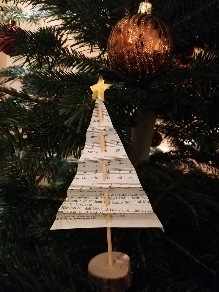 Anschließend an die Feier wurden kleine Papierchristbäume, gestaltet von den Mitgliedern des Liturgiekreises, an die Familien verteilt. Musikalisch umrahmt wurde die Feier von Tina Riegler, Julia Papst und Christoph Poier.