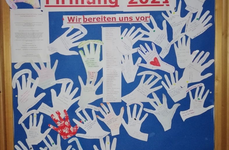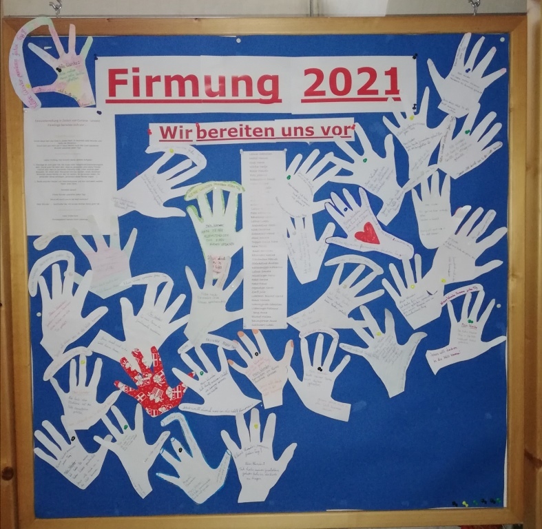 Immer wieder sind die Ergebnisse ihrer Aufgaben in der Pfarrkirche auf Schautafeln sichtbar. Derzeit der Impuls 3, zum Thema "Jesus".