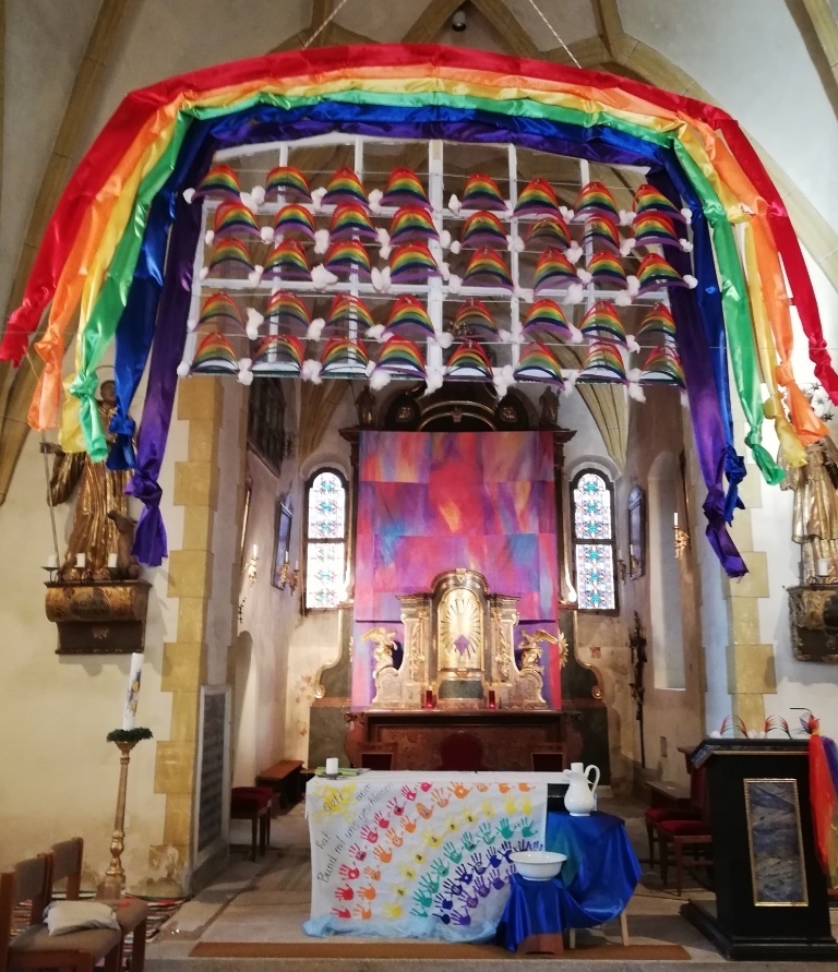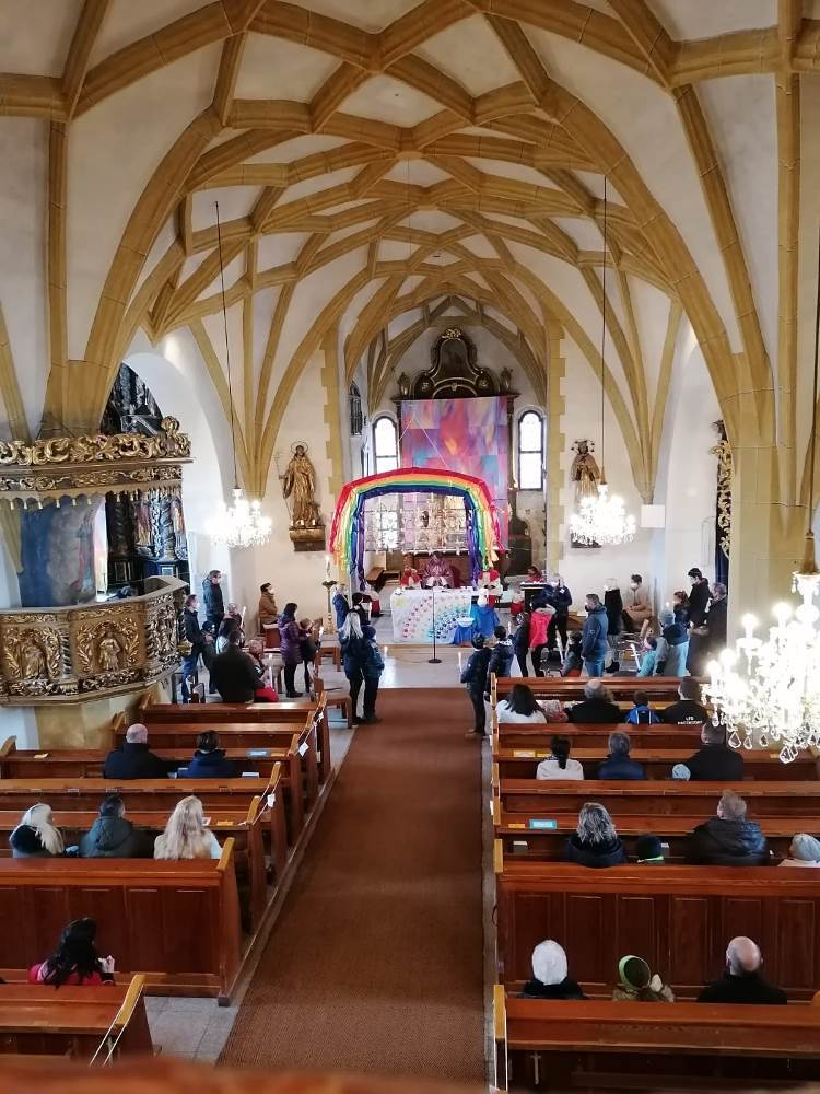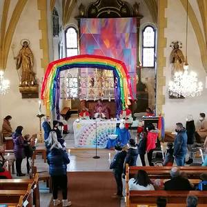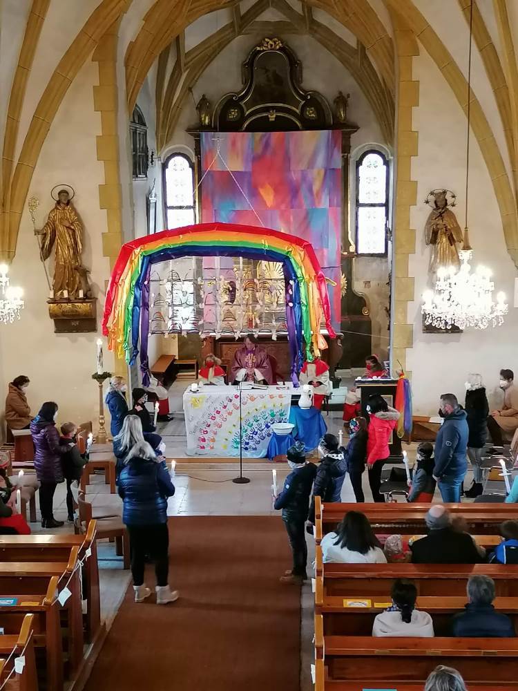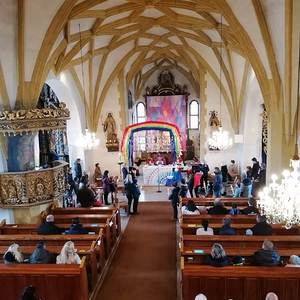 Im Rahmen dieser Feier wurde auch die Tauferinnerung gemeinsam mit den Taufpaten gefeiert. Die heurige Erstkommunion steht im Zeichen des Themas Regenbogen. Dafür haben die Kinder im Vorfeld bereits ein Altarbild sowie Regenbögen als Dekoration kreativ gestaltet. Musikalisch umrahmt wurden diese Feiern von Magdalena Reiter und Hannelore Richter. ein herzliches "Vergelts Gott."