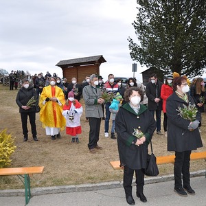 Die Palmweihe und die heilige Messe mit Pfarrer Heimo Schäfmann, fand heuer erstmals vor der ehemaligen Volksschule in St. Anna statt.