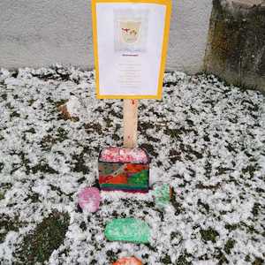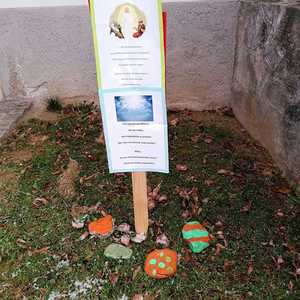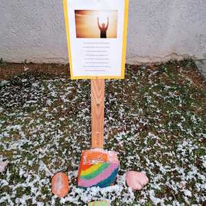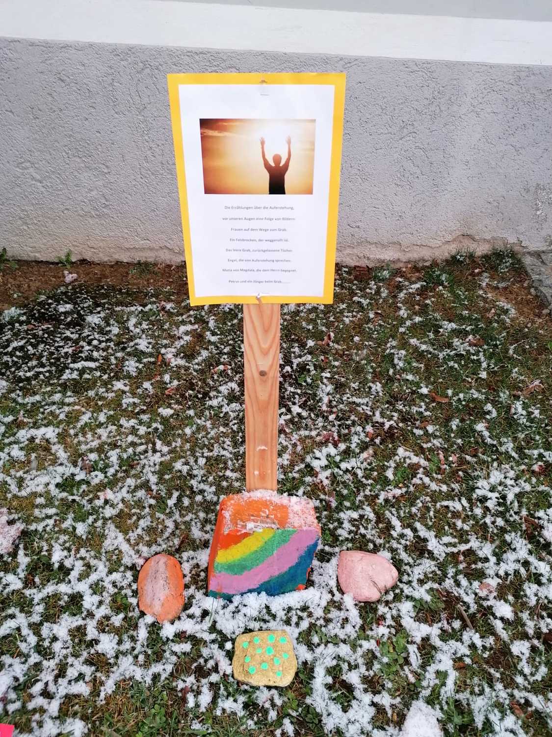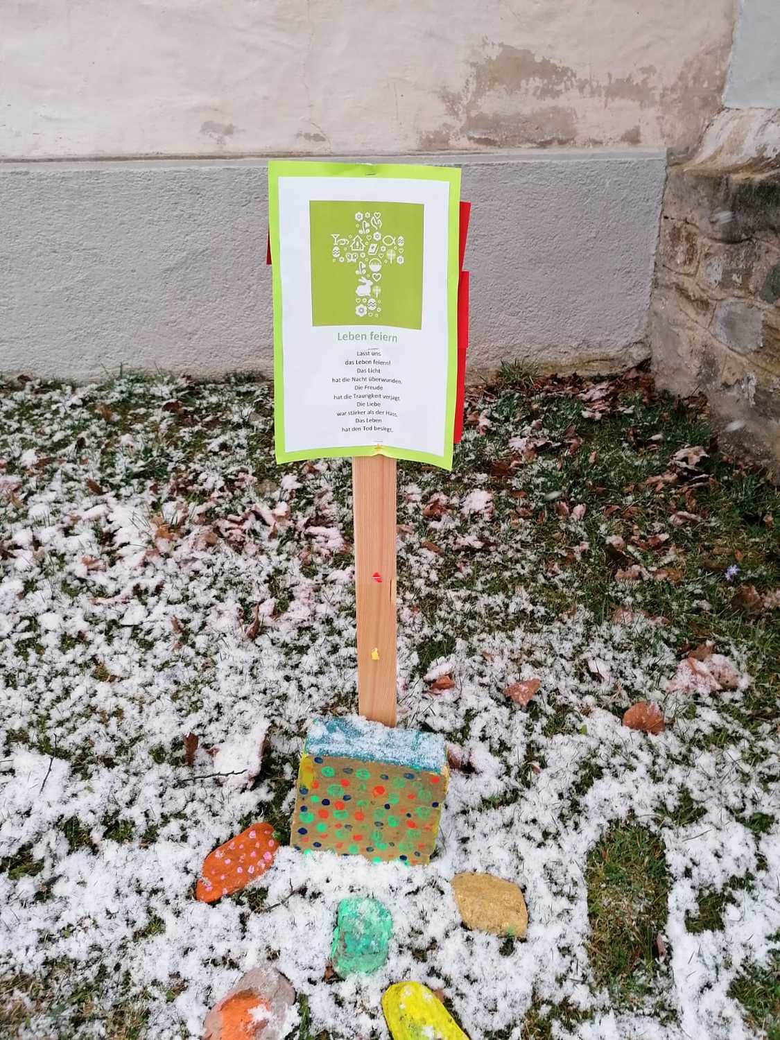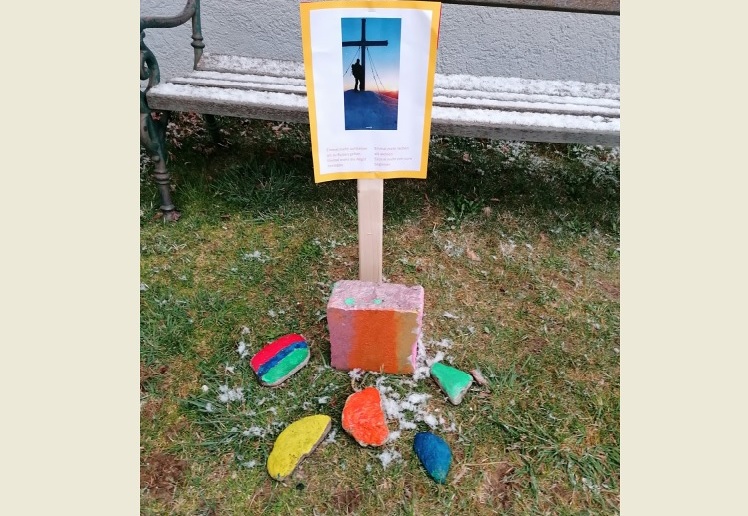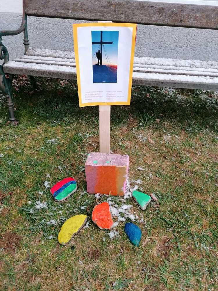 Ministranten malten mit viel Eifer Steine für einen Aurferstehungsweg vor der Kirche. Insgesamt sieben Stationen laden ein, ein wenig innezuhalten und sich mit dem "neuen Leben" zu befassen.
