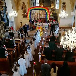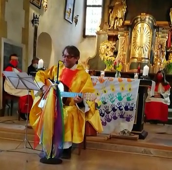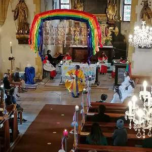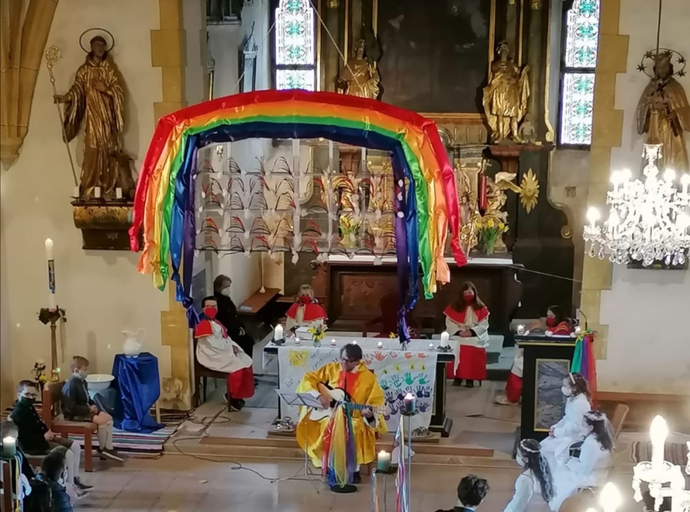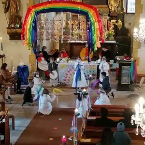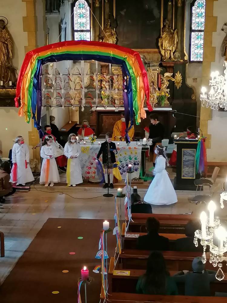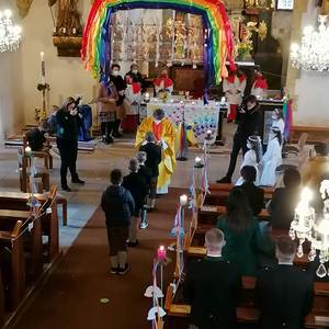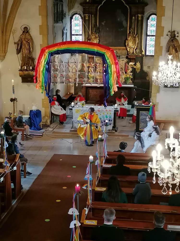Die Kinder bereiteten sich im Religionsunterricht, sowie in mehreren Kinderandachten auf dieses wichtige Fest vor. Pfarrer Mag. Schäfmann bereitete in seiner Predigt die Wichtigkeit und Einzigartigkeit jeder einzelnen Farbe auf und sang den Kindern ein Lied zum Regenbogen. Musikalisch umrahmt wurden die Gottesdienste von Magdalena Reiter und Hannelore Richter.