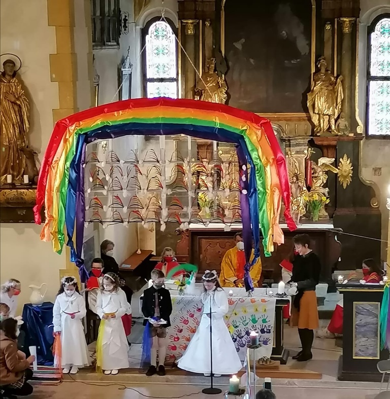 Im Pfarrverband Obdacherland wurde am Weißensonntag in zwei hintereinander folgenden Gottesdiensten, das Fest der Erstkommunion zum Thema Regenbogen gefeiert.