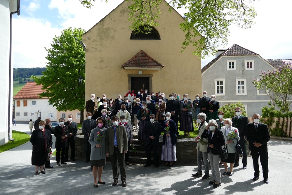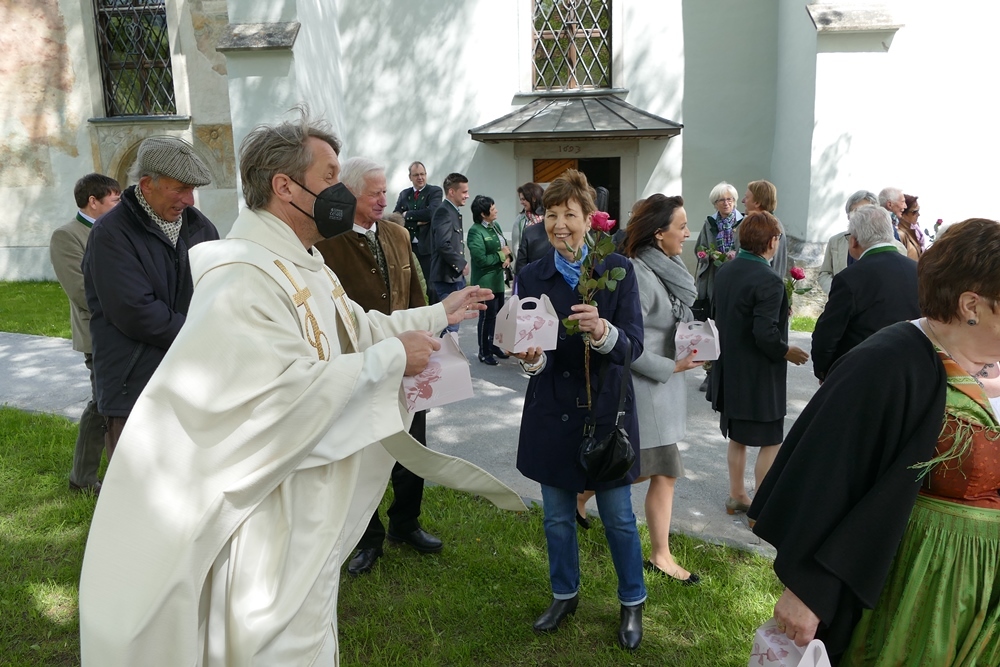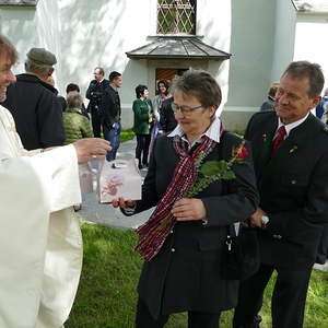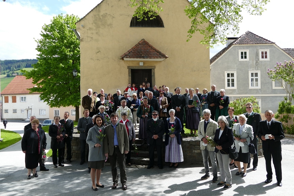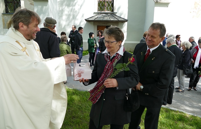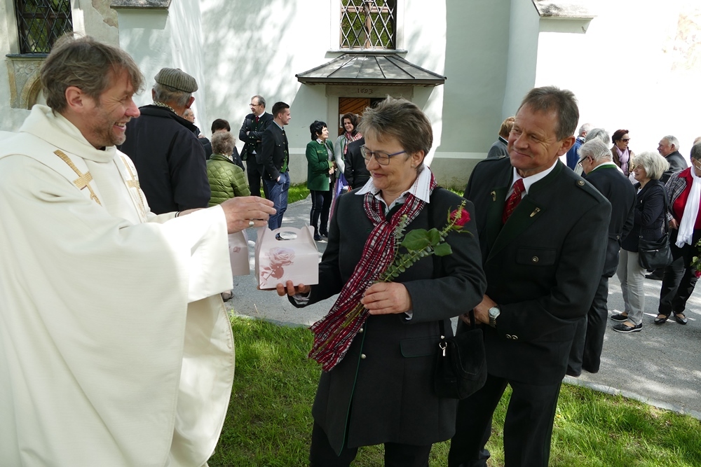 Gottesdienst zu feiern. Ein kleiner Holzkeil, der immer wieder alles ausgleicht, durfte gemeinsam mit einer Rose und zwei Stück Torten als Erinnerungsgeschenk mit nach Hause genommen werden. Musikalisch umrahmt wurde der Festgottesdienst von Magdalena Reiter, Hannelore und Richard Richter. Für die köstlichen Torten und die Texte zum Gottesdienst zeigen sich die Damen des PGR verantwortlich. Allen ein herzliches Vergelt´s Gott dafür.