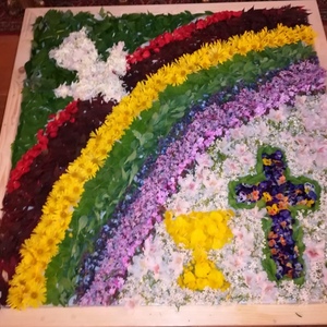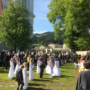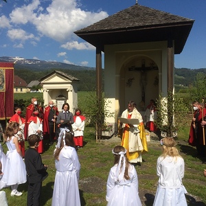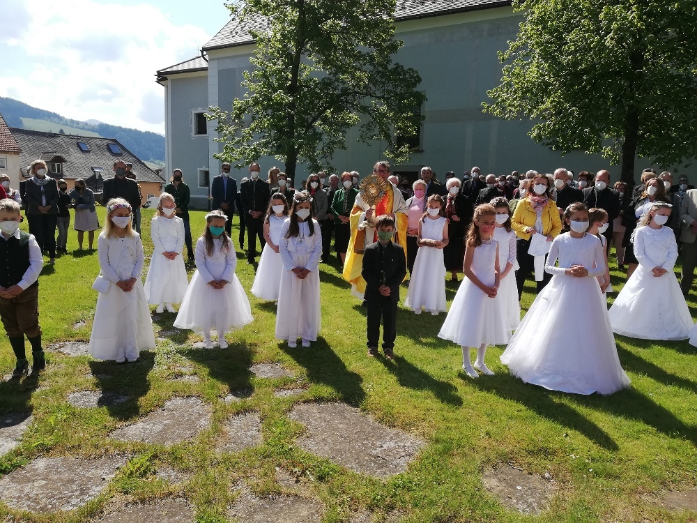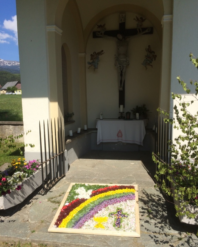Fronleichnam das Fest des Leibes und Blutes Christi. Gefeiert, am 3. Juni 2021 im Pfarrverband Obdacherland in Obdach und St. Wolfgang. Viel Fleiß und Vorbereitung sind notwendig um dieses ganz besondere Fest zu feiern. Ein großes Dankeschön dafür. heuer waren auch einige Erstkommunionkinder dabei, die mit ihren schönem Festtagsgewand zusätzlich das Fest schmückten. Musikalisch umrahmt wurden die Feierlichkeiten von kleinen Abordnungen des Musikvereins Obdach. Das Blumenbild wurde von den Bäuerinnen für die Station gefertigt. In St. Anna wurde bereits am 30. Mai gefeiert, am 6. Juni wird es noch in St. Georgen im Rahmen des Sonntagsgottesdienstes stattfinden.