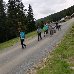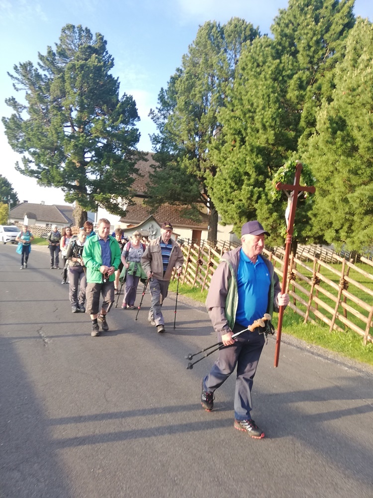 Am Samstag um 6 Uhr segnete Pfarrer Ferdinand Sattler die Wallfahrer in der Pfarrkirche St. Anna bevor es los ging. Bei angenehmen Wanderwetter beteten sie über die Alm Richtung Maria Hilf.