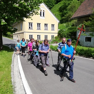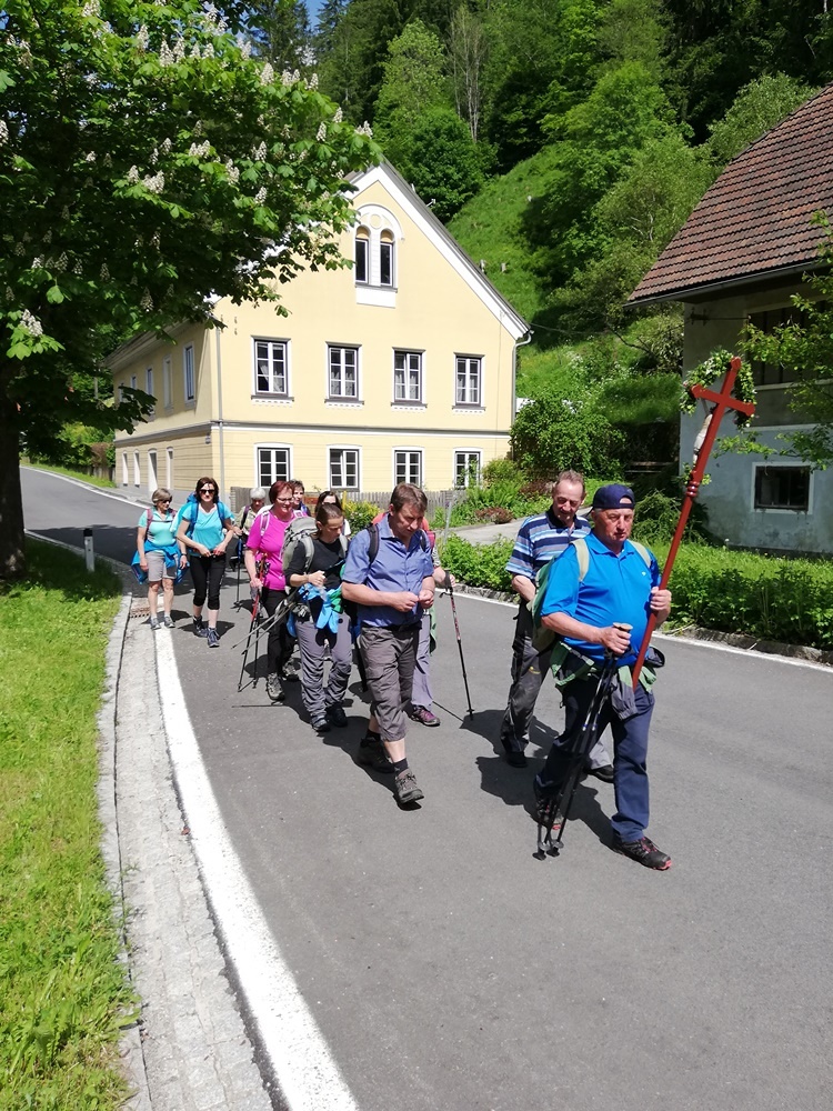 Es ging bei einigen Wegkreuzen vorbei und auch in den beiden Kirchen am Pilgerweg in St. Johann und Hüttenberg wurde kurz gebetet und gesungen.