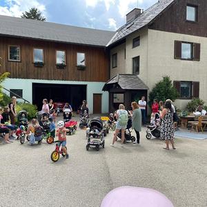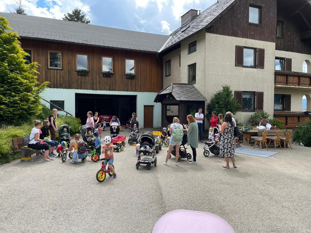 Past. MA Anni Koini und Gruppenleiterin Katrin Pojer gestalteten für die Kleinen eine Andacht zum Thema „Allzeit von Gott beschirmt sein“. Musikalisch umrahmt wurde die Feier von zwei Mami`s, gemeinsam gesungen von allen. Anschließend durfte jedes EKI Kind ein Schirmchen als Andenken mitnehmen. Ein weiter Höhepunkt dieses Vormittags war ein Spaziergang von der Kirche zu einem EKI Kind nach Hause , Maxi Fössl, wo es eine stärkende Jause, Kuchen, Obst und Getränke gab. Auch viel zum Spielen, Fahrzeuge, Sandkiste, Hutsche usw. sorgten für einen gelungenen Vormittag. Ein herzliches Vergelt`s Gott der Familie Fössl für die Gastfreundschaft. Allen EKI´s wünschen wir eine gute Zeit bis zum Herbst. Den Kindergartenanfängern alles Gute und viele Freude im neuen Lebensabschnitt.