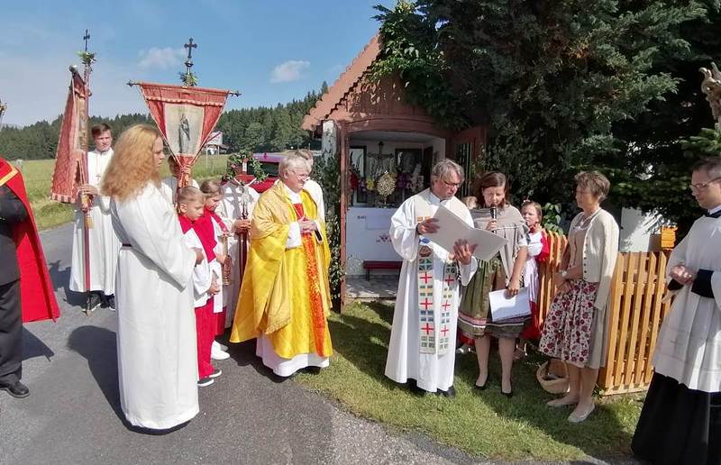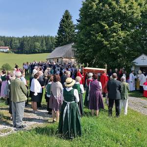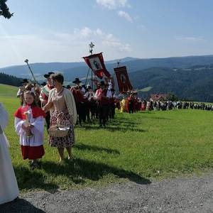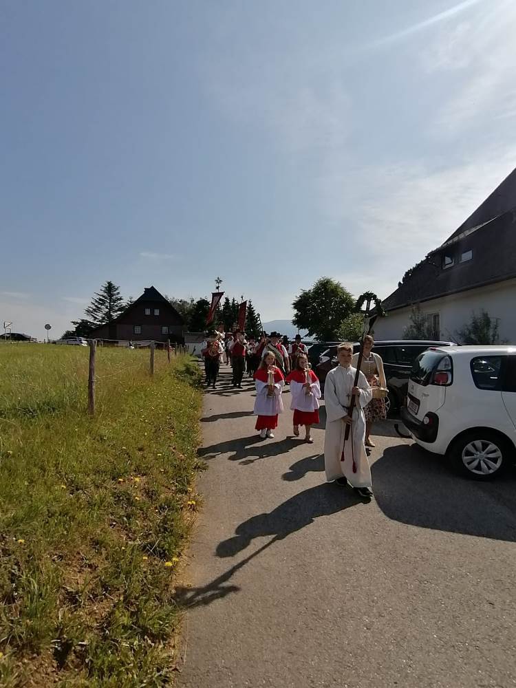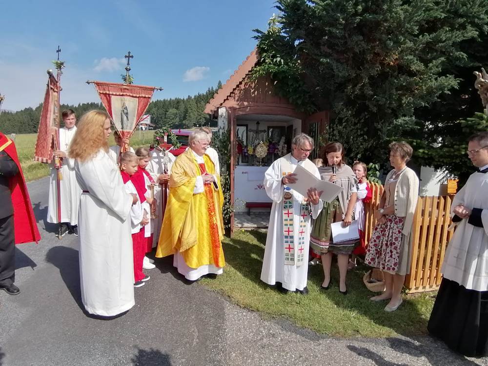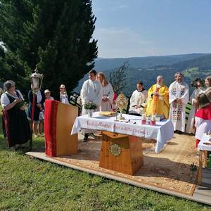 Danach startete die feierliche Prozession mit drei Stationen. Bei der letzten Station spendete der Abt den Wettersegen und nach 'Großer Gott wir loben dich' wurde das Allerheiligste wieder in die Kirche gebracht.