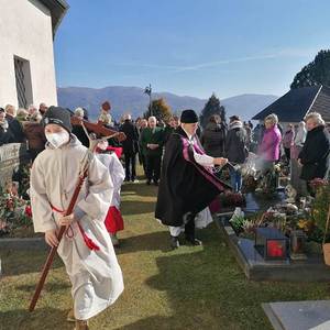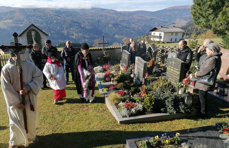 Nach der Hl. Messe in der Pfarrkirche St. Anna segnete Pfarrer Ferdinand Sattler die Gräber im Friedhof.