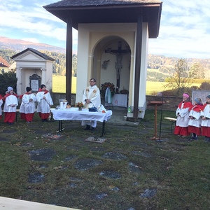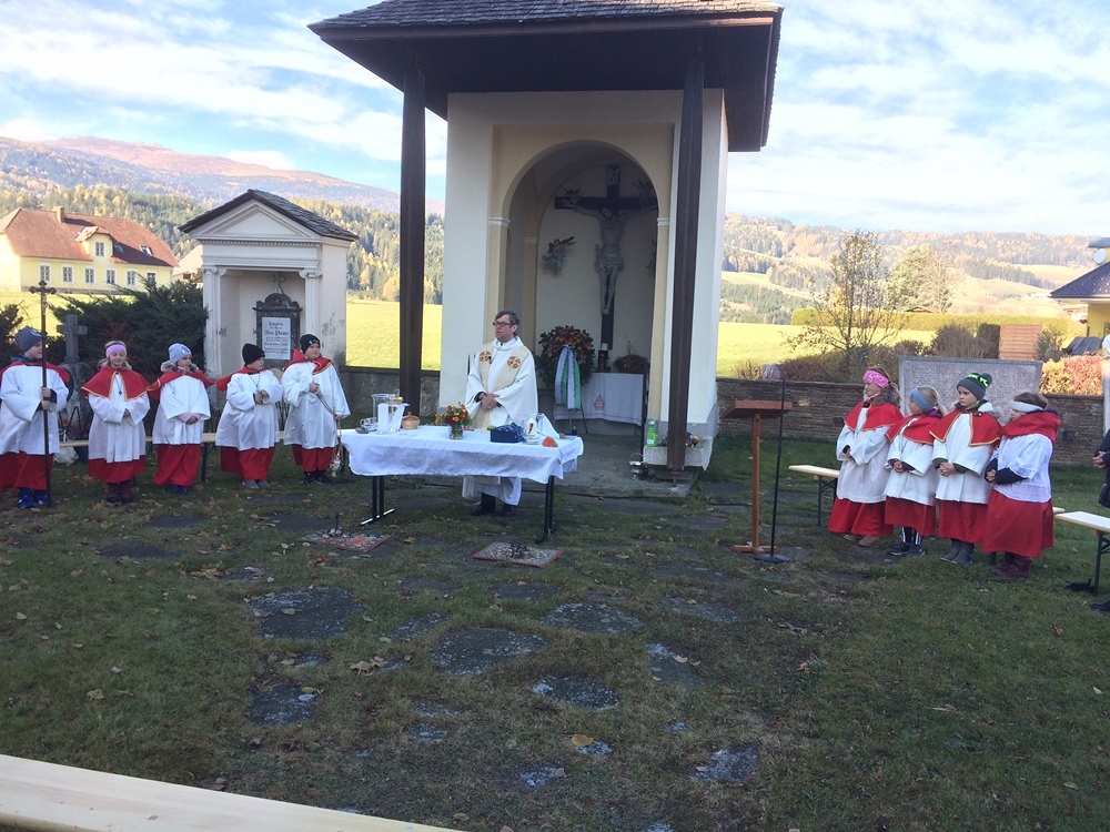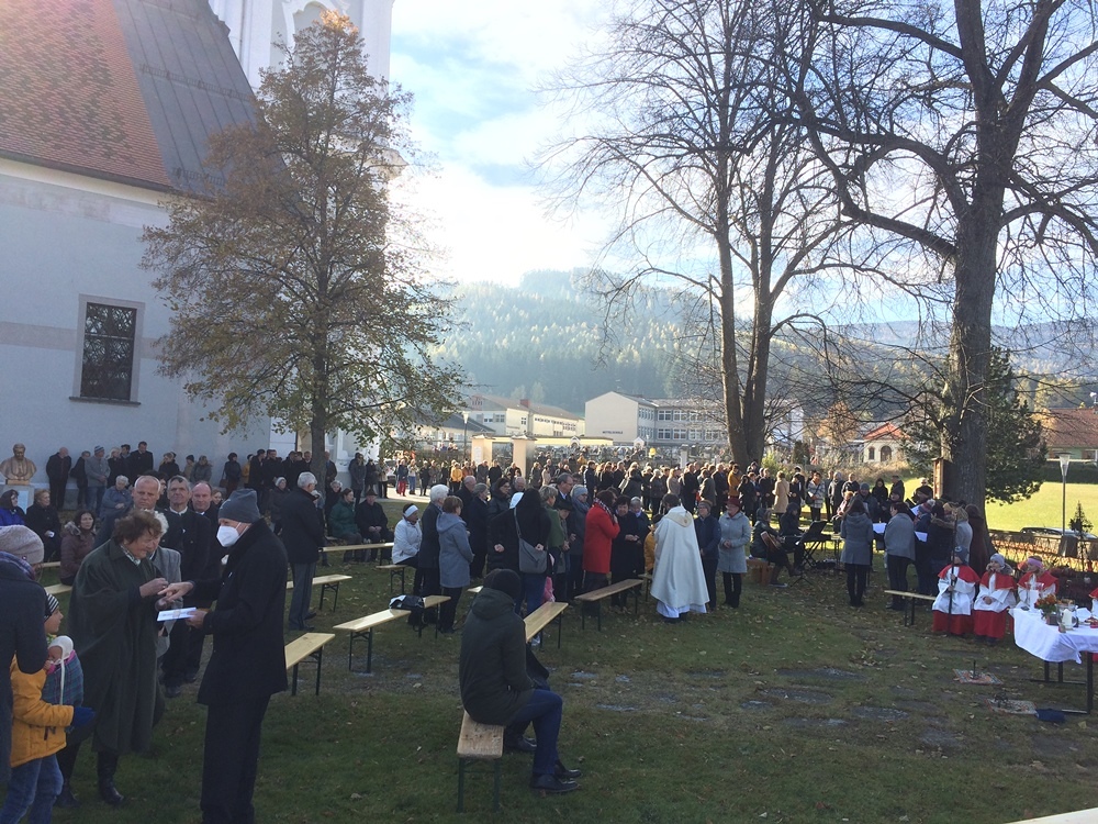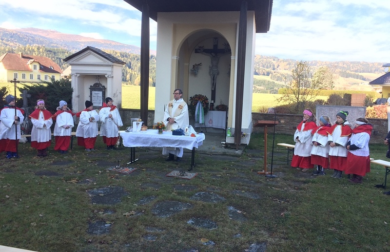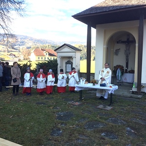 Der "Atem Gottes", wie Pfarrer Heimo Schäfmann den sehr starken Wind bezeichnete, begleitete den Gottesdienst zu Allerheiligen, der unter freiem Himmel beim Kriegerdenkmal zelebriert wurde.