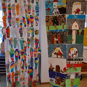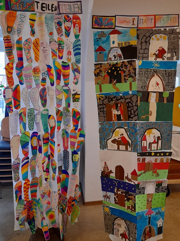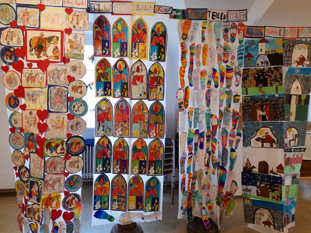 Ein Stück Brot als Zeichen des Teilens sowie ein Gebet, etwas zum Malen und ein Martinswürfel durften mit nach Hause genommen werden. Ein herzliches Dankeschön allen, die viel hergerichtet haben und zu Besuch waren.