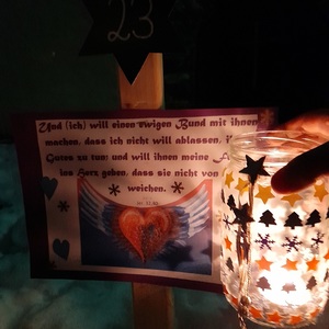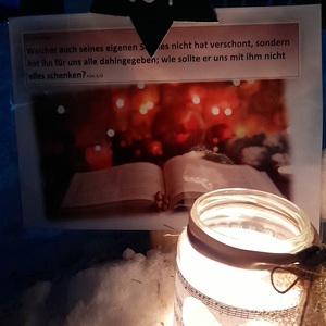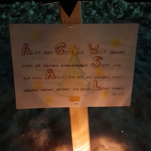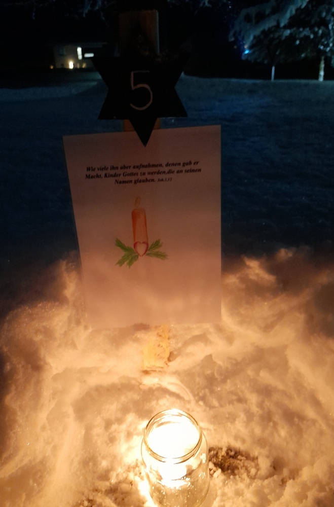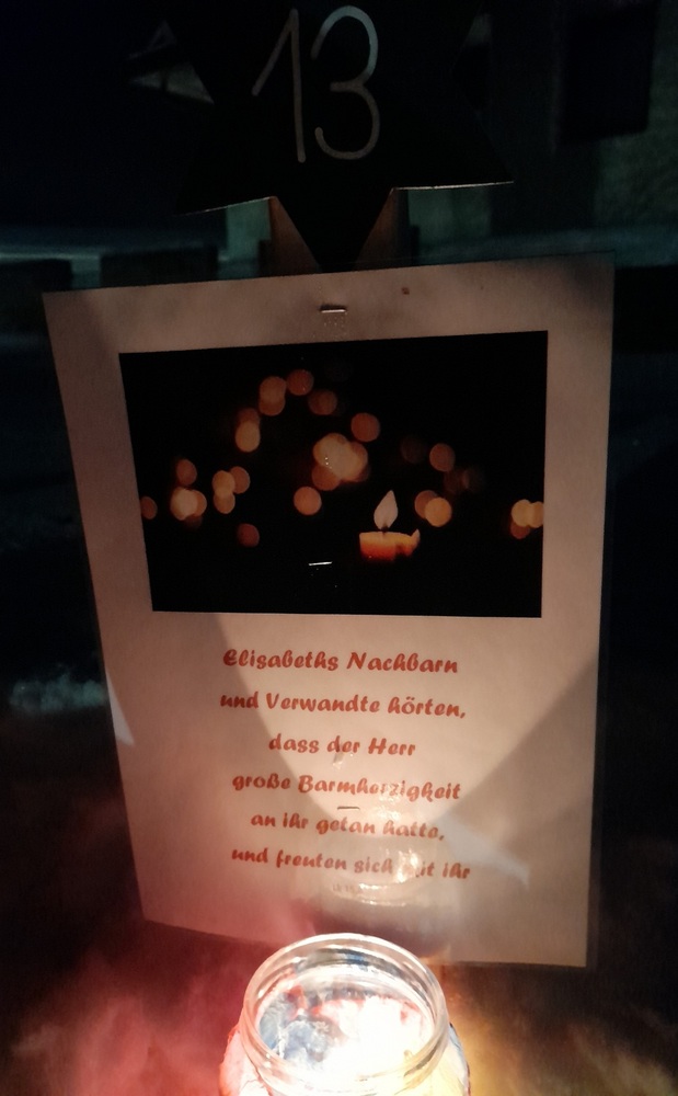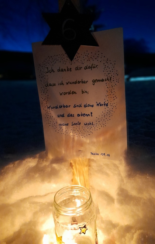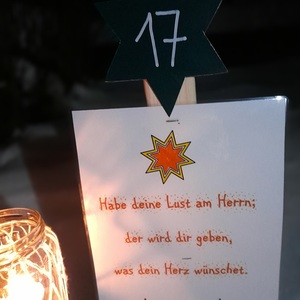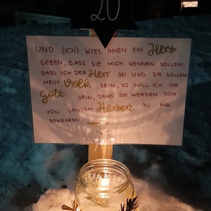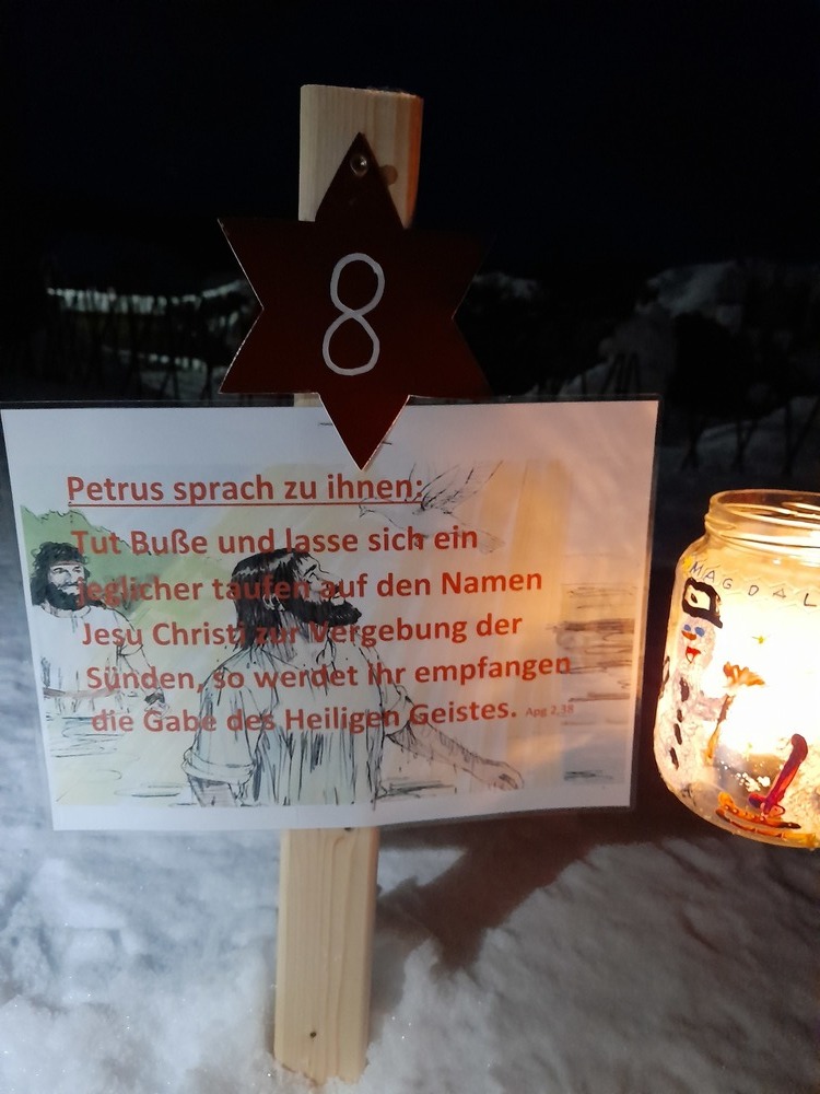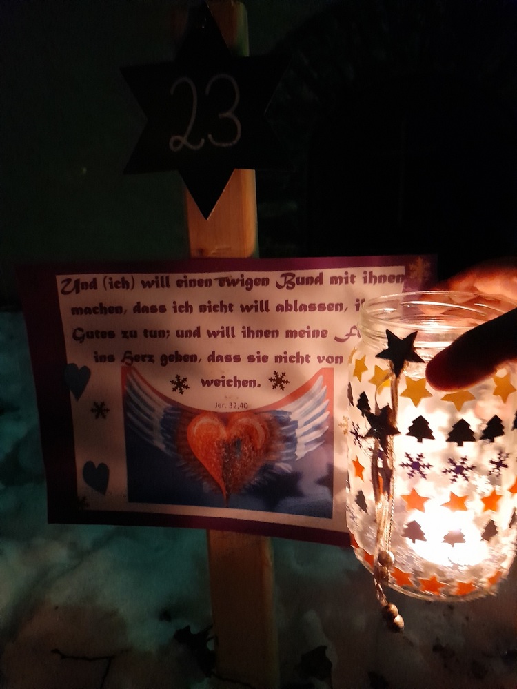 Am 1.Advent wurde um 17.00 Uhr rund um unsere Pfarrkirche ein "Pfarradventkalender" begonnen. Täglich um die gleiche Uhrzeit wird ein Pfarrmitglied/Familie einen Beitrag auf einen dafür vorgegebenen "Holzpflock" anbringen. Ebenso wird bei jedem schon vorhandenem Beitrag ein Licht entzündet. So entsteht ein immer heller werdender Weg auf Weinachten hin.