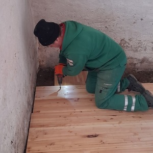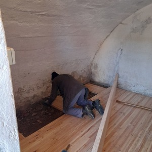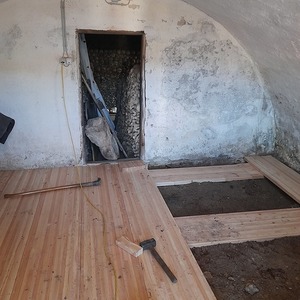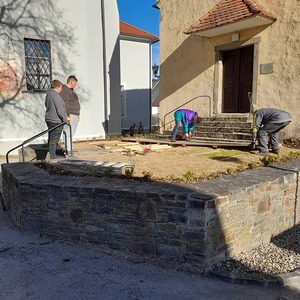 19.01.2022 Fleißige Hände haben am Samstag einen neuen Boden in den Vorraum des Karners hineingezaubert.