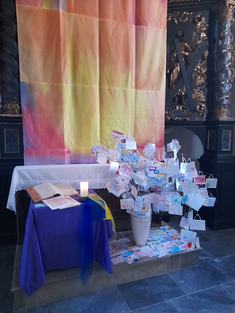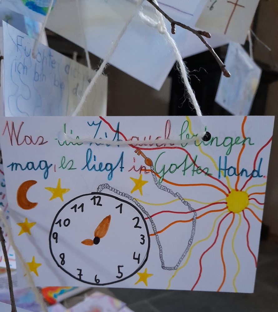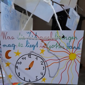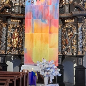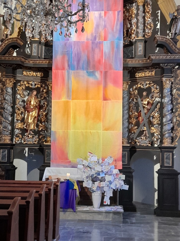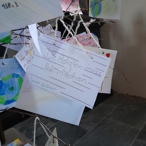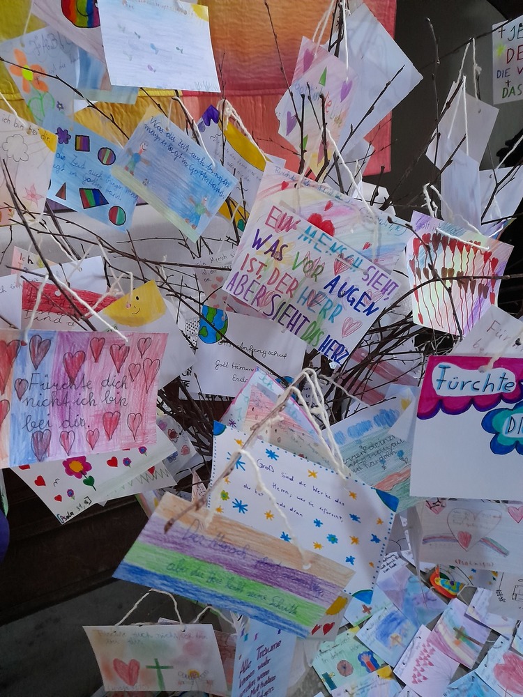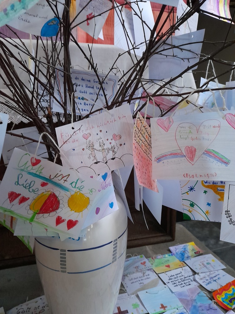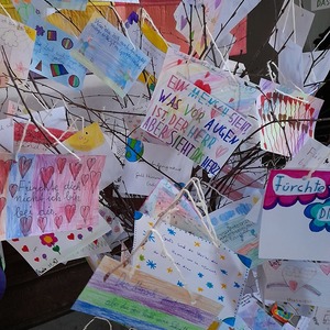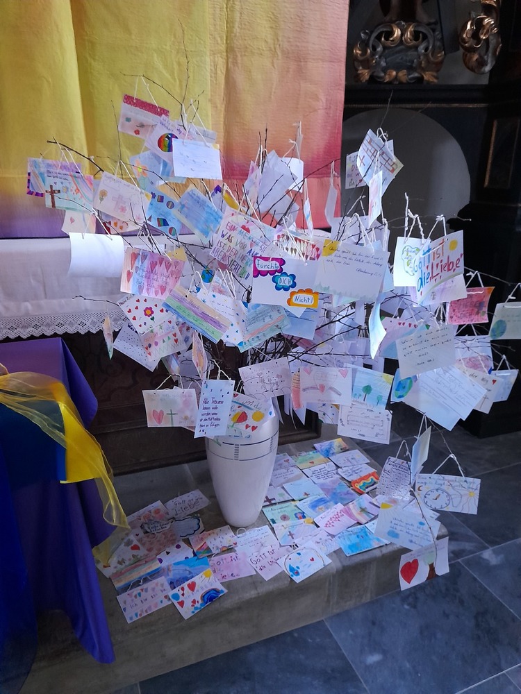 08.03.2022 Die Schüler:innen der VS und MS Obdach haben mit Bibelverse und persönlichen Bitten den Fastenstrauch in der Obdacher Pfarrkirche bunt geschmückt