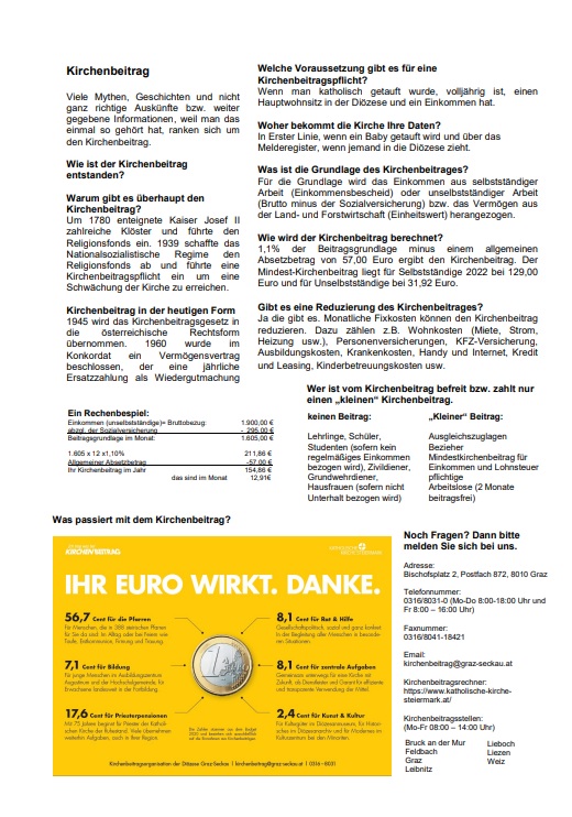 Info zum Kirchenbeitrag | Pfarrverband Obdacherland